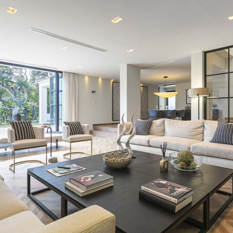 Fully renovated family house. On the main floor there’s an open plan kitchen dining – and living room with large folding doors opening up to the garden. From the living room a few steps lower is a lovely office space, that could easily be made in to an additional bedroom. There’s a low ceiling space next to the office that would make an excellent wine cellar. On the other side of the living room is one ensuite bedroom with access directly to the parking and garden (ideal for guests). Leading from the front door, past the living room is a guest bed with ensuite bathroom. Next to this we have an optional master bedroom with walk-in wardrobes and ensuite bathroom. Upstairs is the other master bedroom with large ensuite bathroom and large closets. Next to this we have two bedrooms sharing one bathroom. Up by the staircase is a nice size terrace overlooking the garden and pool. Next to the main house is lovely staff/guest house with large ensuite bathroom and space for a kitchen. This has lovely views directly to the pool area. There is two garages and on the property additional space to park up to 6 cars more. The house was originally built in 1995, but was completely renovated in 2021. Don’t miss out on this absolute gem! Property ID: MLH-R4639357 Price: €2,650,000 Property Size: 515 m2 Land Area: 2316 m2 Bedrooms: 7 Bathrooms: 7 Property Type: Detached Villa Property Status: For Sale