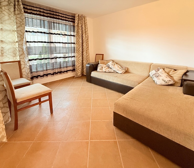 Spacious 2 bedroom apartment, 102 sq.m., In Solis, Sunny beach, 300 m to the sea We offer for sale very sunny 2 BED apartment in the southern part of Sunny beach resort, close to popular Cacao beach and Nessebar town Distance to the sea is 300 m. The property is situated on the 2nd floor with a lift and has a total area of 102 sq.m. It is offered furnished and comprises of: – corridor – kitchen with living-room; – 2 bedrooms; – bathroom/WC; – separate toilet; – good size terrace.. Act 16. Low maintenance fee – 150 EUR per year. Excellent for year-round residence and holiday rentals.
