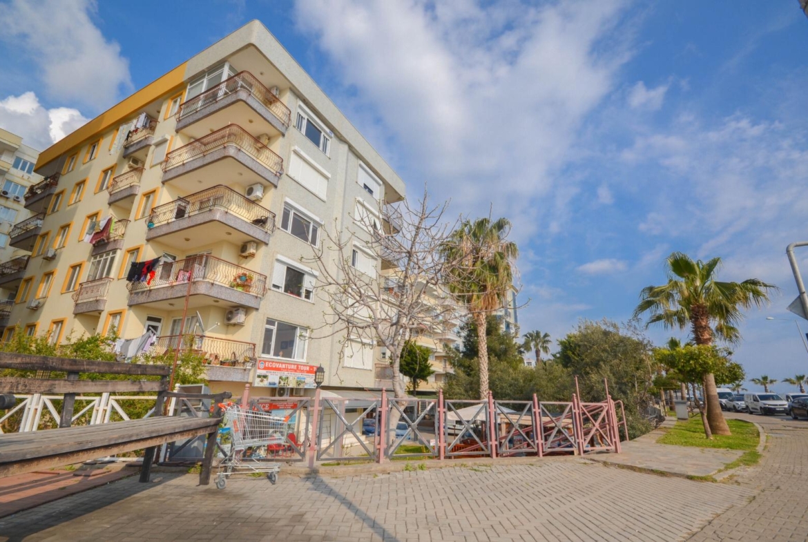 Property for sale in Tosmur – This apartment for sale in Tosmur is a spacious 2+1 unit, fully furnished and located just 30 meters from the sea. With a total area of 128 m² (108 m² net), it offers comfortable living with a separate kitchen, a cam balcony, and a storage room. The apartment is on the 1st floor, facing west and north, ensuring plenty of natural light. Built in 2005, the property is well-maintained and move-in ready.