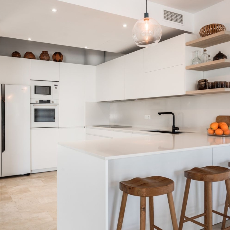 Large family 4-level corner unit townhouse located in Las Encinas, a front line golf gated complex in La Quinta, Benahavís. It comprises, on the main level: open-plan fully fitted and equipped kitchen; living and dining area with access to a terrace offering lovely views to La Quinta golf; guest bedroom; guest toilet. Downstairs: two en-suite bedrooms, both with views to the golf course; storage room. The first floor has a spacious en-suite master bedroom, with stairs leading up to the solarium with beautiful mountain and golf views. There is a possibility to add a Jacuzzi or plunge pool there (please see renders of both as an example, more information upon request). The complex offers an optional membership (EUR 100 per month) to have access to the facilities of the 5-star Westin Hotel located 50 metres away including pool, spa and gym. With possibility to sign up for a golf membership of La Quinta Golf. The property comes with 2 parking spaces and a storage room.