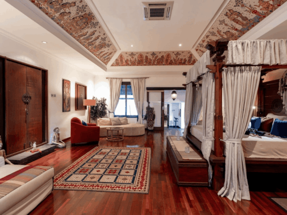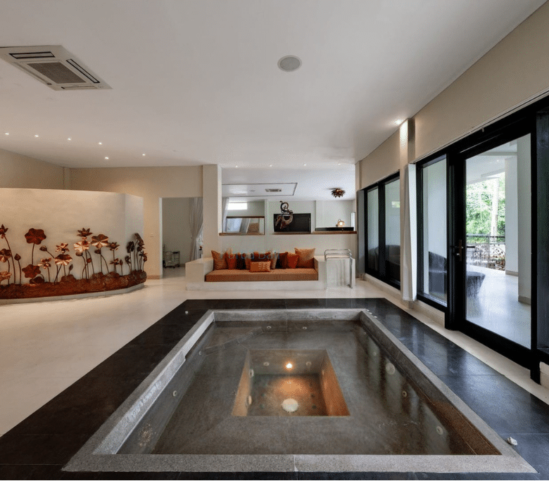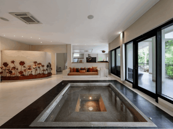 This contemporary 10-bedroom, 11-bathroom villa spans 2,288 sqm of living space. It boasts expansive enclosed living and dining areas, a fully equipped Western kitchen, and two exquisite swimming pools, including a 20 x 9-meter rectangular pool. Luxurious features abound, from a dedicated billiard lounge and two jacuzzis—one in the spa area and another in the master suite with a walk-in closet—to a state-of-the-art cinema room, gym, and meditation space. The estate also offers ample parking for up to five cars, with room to accommodate larger vehicles, making it perfect for entertaining on a grand scale.