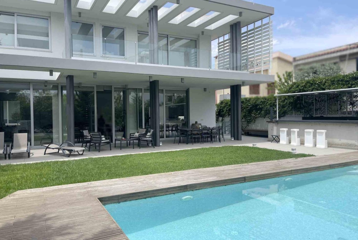 Welcome to this stunning luxury home that epitomises minimalistic design and cutting edge technology. This architectural masterpiece offers a harmonious blend of sleek aesthetics and state of the art features, providing the ultimate modern living experience. With the added convenience of an elevator and a semi-basement featuring even a cinema room, this residence truly redefines luxury living. The carefully curated interiors feature top of the line finishes and high-tech amenities, setting a new standard for contemporary luxury. The masterfully designed living spaces effortlessly blend indoor and outdoor living. Experience the pinnacle of sophistication and embrace the extraordinary lifestyle offered by this minimalistic high tech luxury home.