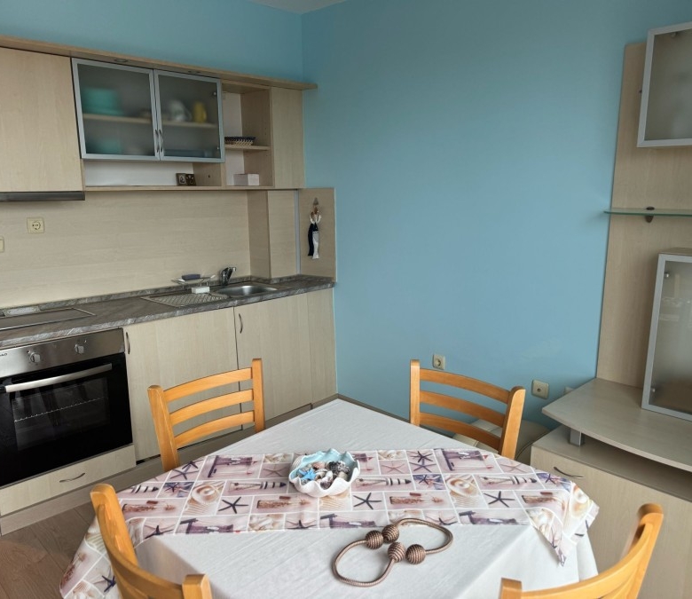 Studio with a big terrace, 45 sq.m., top location – center of Sunny beach, no maintenance fee We offer for sale spacious studio with an area of 45 sq.m, located in a top center in Sunny Beach, right behind the “Diamond” hotel. The apartment is located a minutes walk from the main street of the resort, in close proximity to shops, restaurants, cafes and entertainment venues. The location is extremely convenient, while offering peace and quiet. Living area – 45 sq.m. Floor: 4 The property comprises of: – hallway; – open plan kitchen with living-room; – bathroom/WC; – big terrace The apartment is fully furnished and equipped with all necessary electrical appliances, including an oven, hob, extractor hood, TV and air conditioning. In addition, it has a spacious terrace, providing additional space for relaxation and enjoying the good weather. Act 16 – Permission to usage No maintenance fee