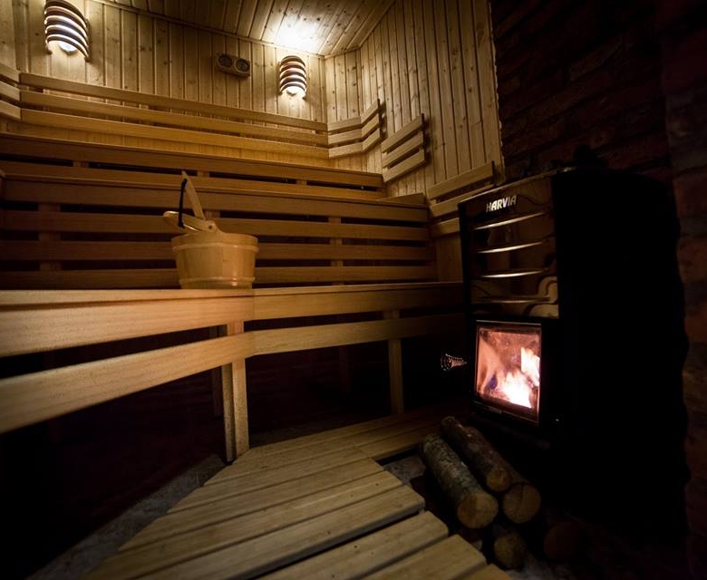 Besides that, there is a lobe with sauna and wood-burning hot tub.