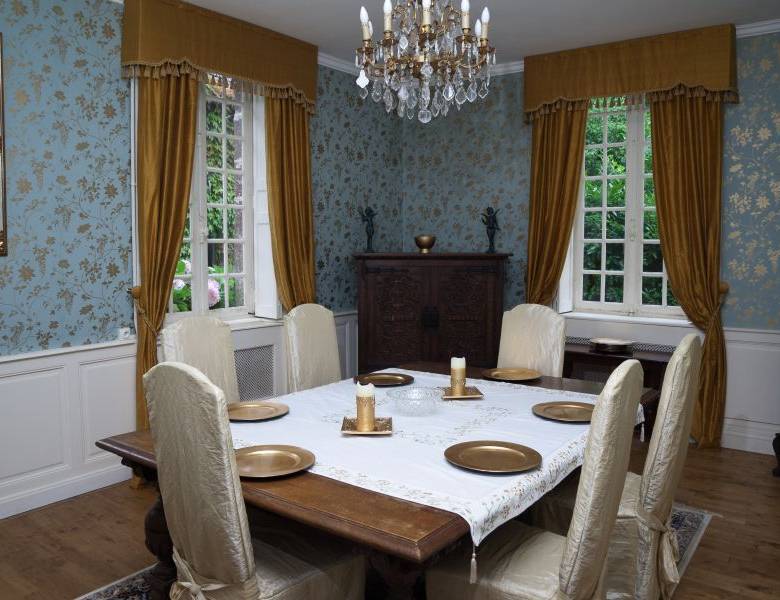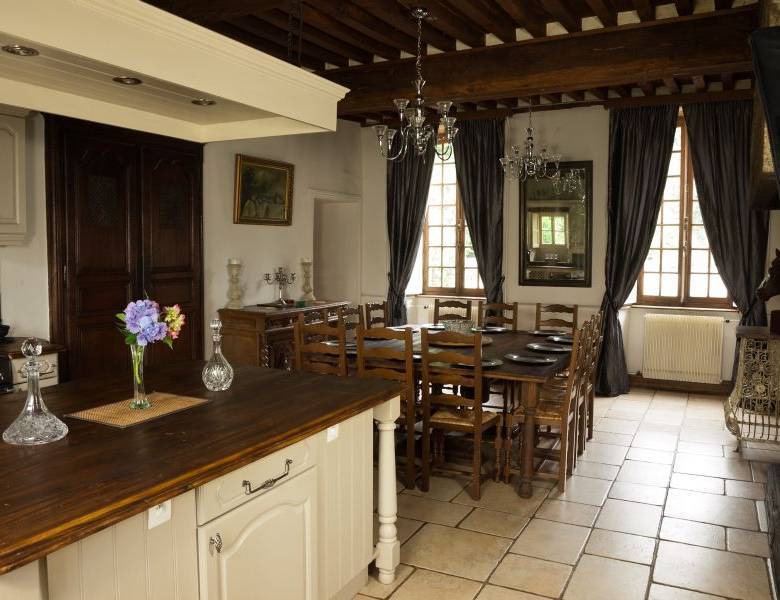 The chateau is fully furnished with all the necessary equipment for preparing and serving meals as well as cleaning and drying clothes. The utilities include a large double-oven range-cooker with extractor, a microwave oven, a toaster, a fridge, a freezer, a washing machine, and a tumble dryer. All bed linen is also supplied.
