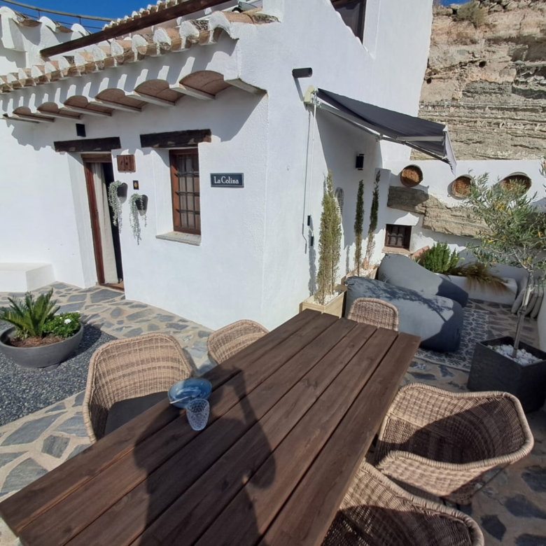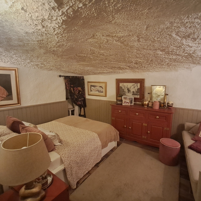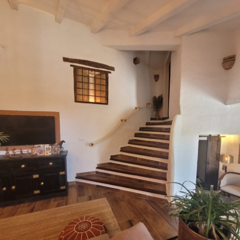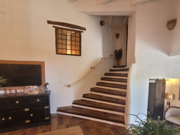 One of the most remarkable features of this unique dwelling is its dual aspect. A traditional ‘cave’ room, ingeniously carved into the hillside, runs through the property. This architectural marvel acts as a natural climate control system, providing a welcome respite from the heat of the Andalusian summer and offering comforting warmth during the cooler winter months. This inherent design not only contributes to the property’s incredible energy efficiency but also creates a uniquely tranquil and stable indoor environment year-round, ensuring your comfort no matter the season.