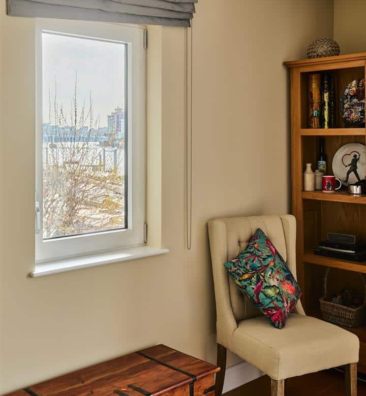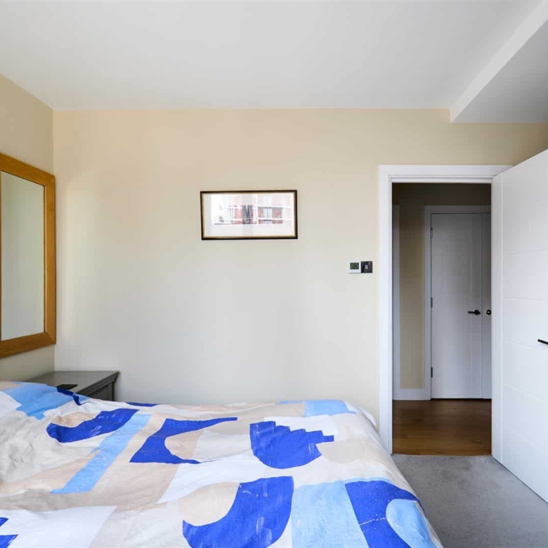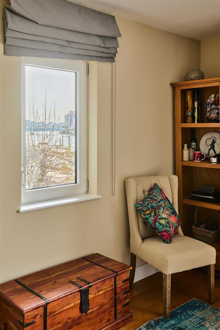 The separate and inviting lounge serves as the perfect haven to unwind, bathed in natural light and offering direct access to a private balcony. From this enviable vantage point, residents can soak in the captivating river views, observing the ebb and flow of life on the Thames. The principal bedroom is a luxurious sanctuary, featuring its own secluded private balcony – an ideal spot for a morning coffee or an evening aperitif while enjoying the riverside setting. This master suite is further enhanced by substantial built-in wardrobes, providing ample storage, and a well-appointed en suite bathroom, offering a touch of indulgence. Thoughtfully designed with privacy in mind, this bedroom shares only one wall with a neighbouring property and benefits from comprehensive soundproofing, ensuring a peaceful night’s sleep. Underfloor heating runs throughout the entire apartment, providing consistent warmth and comfort, with the added convenience of both manual and remote control.