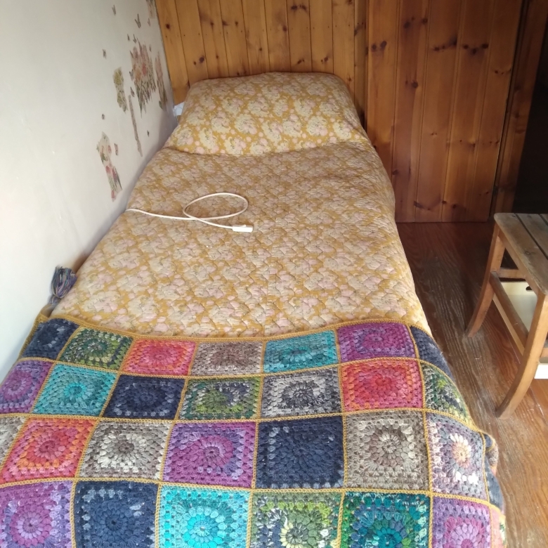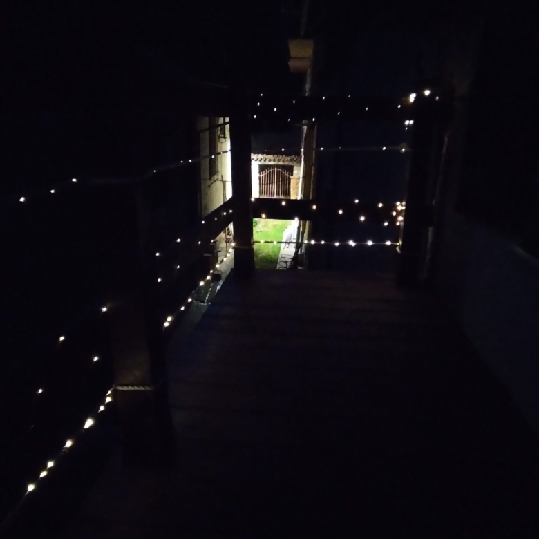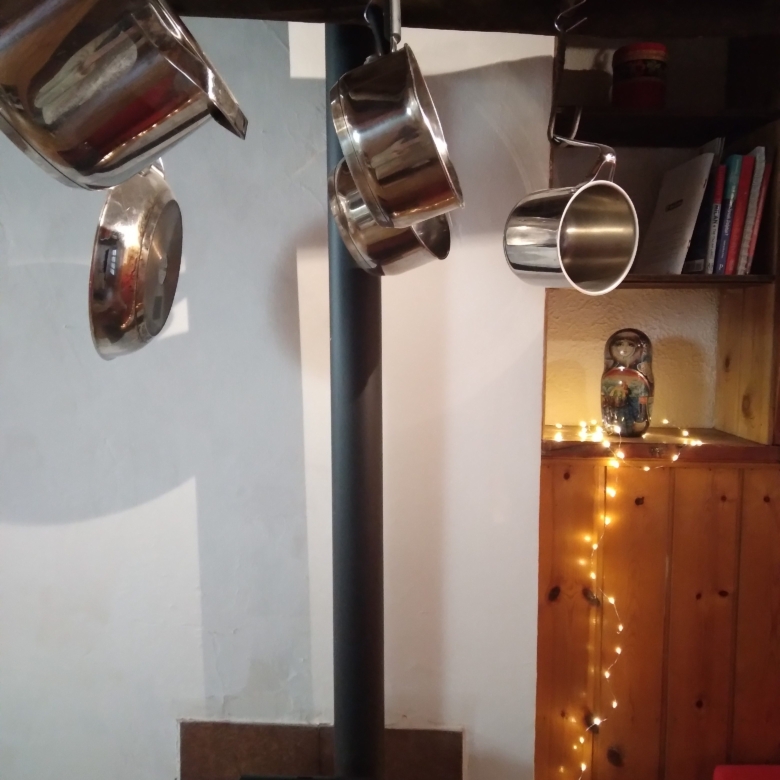 The accommodation includes a single bedroom with a balcony which is exposed to the sun from dawn till dusk. It is possible to relax on the balcony and gain a tan in January. It is accessible through the single bed window. At night the balcony is lit by solar lights. This allows a dreamy and magical view of the looming Alps from the balcony’s twinkling lights as you can sit with all the mats and cushions provided for lazy, end of the day thoughts with a drink and conversation.