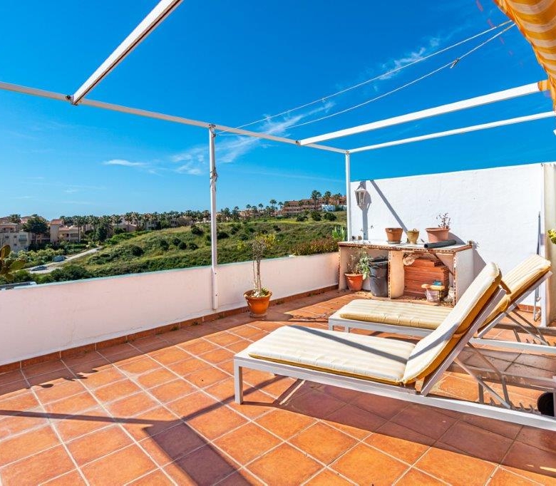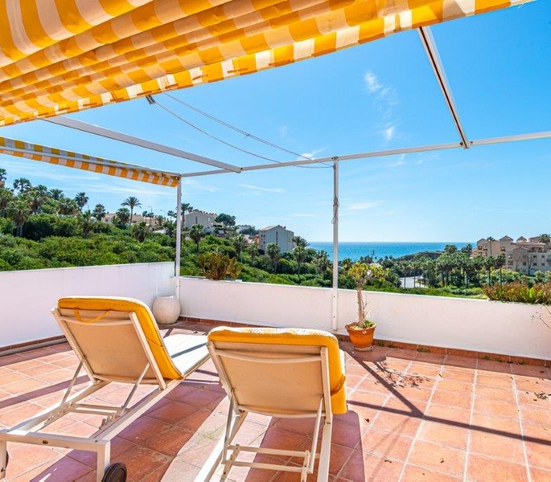 This beautiful 2 bed, 2 bath apartment with magnificent views to the sea and mountains. Very quiet, whilst being within walking distance to a large shopping mall, Fuengirola, the beach, bars, and restaurants, it feels like you are in the country. It is a small community only 12 apartments, so fees are low.