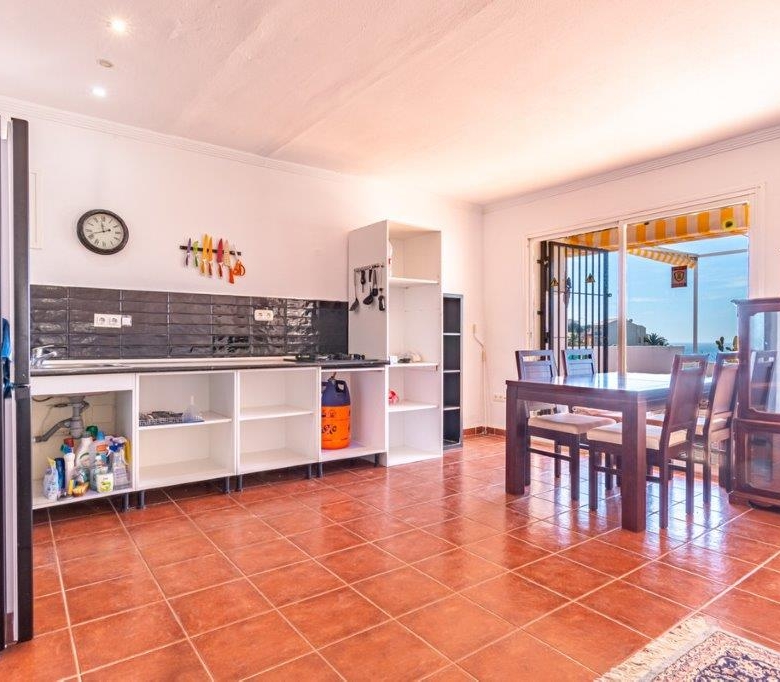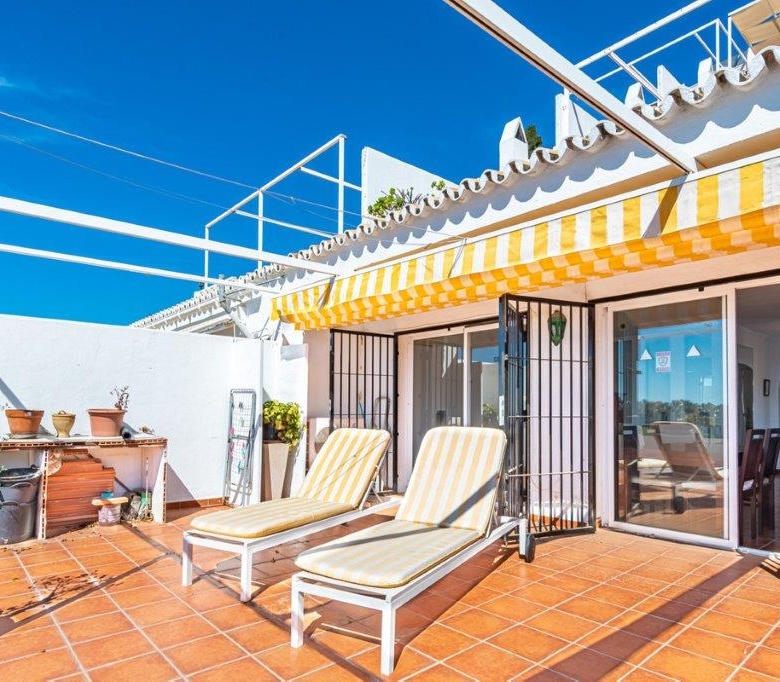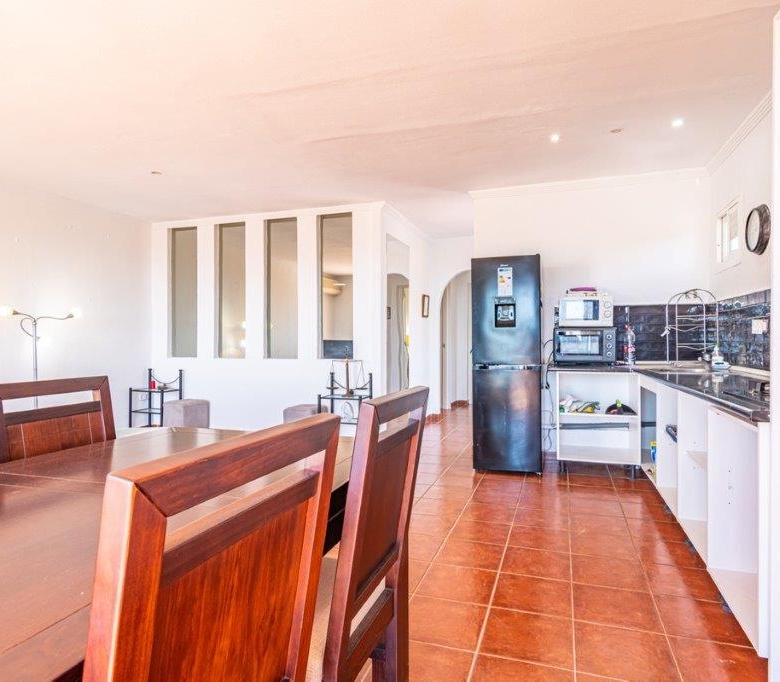 There is no pool, but the Mediterranean is a 5 minute walk. It has a large kitchen, dining/sitting area but the 32M2 terrace, which has an awning is another massive room which can be used almost 12 months of the year. The small BBQ/garden area is just outside the front door and private.