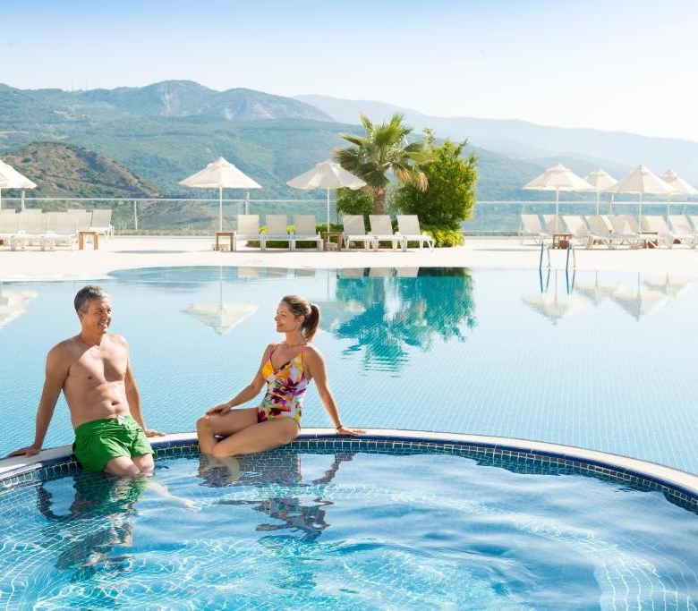 The beach is very close by and a regular shuttle bus connects with the resort’s private club La Costa Beach Club, with its jetty, water sports, swimming pool, a la carte dining, drinks and snacks service. Kusadasi Golf & Spa Resort is in a fabulous location with panoramic views of the sea.
