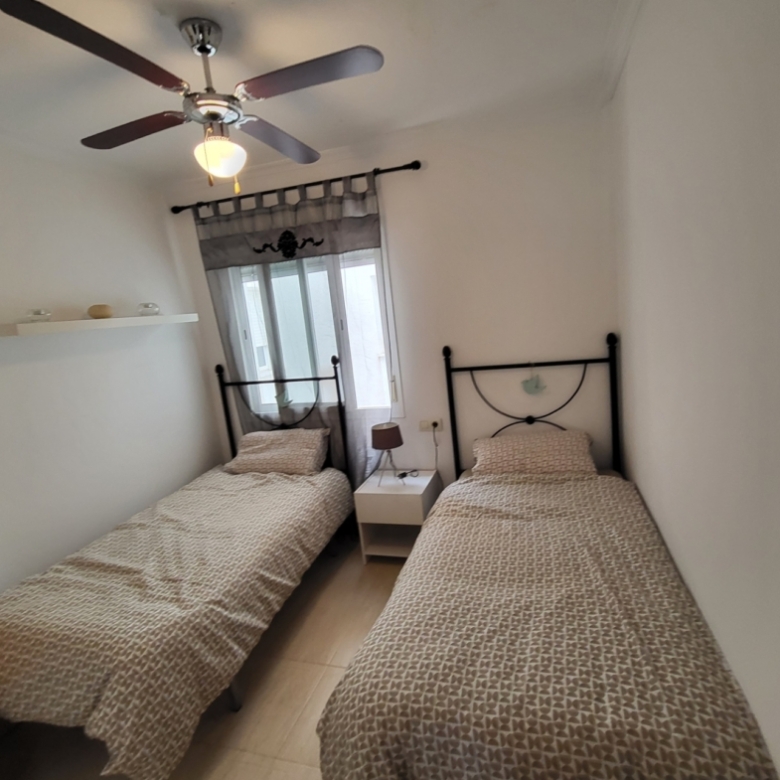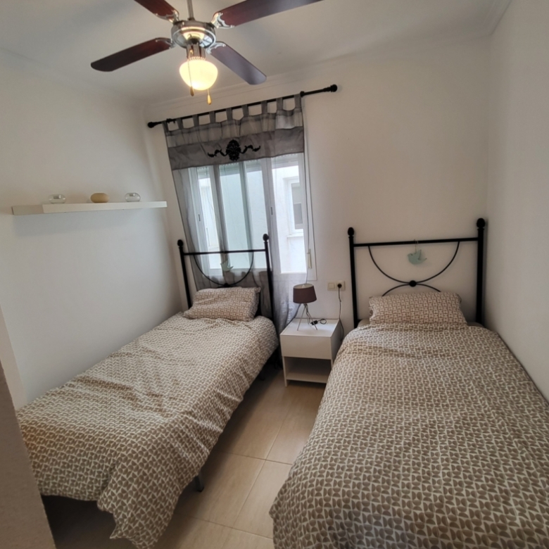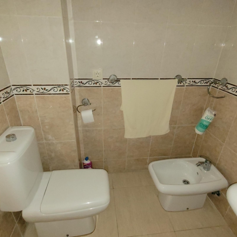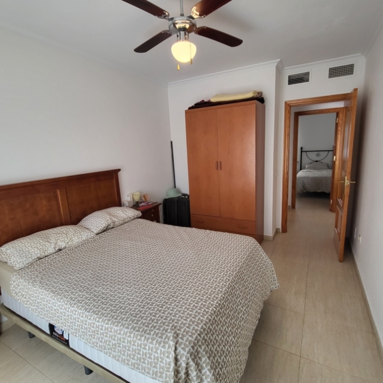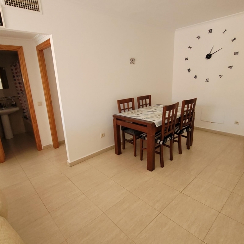 The property itself comprises entrance hallway/dining area, a large living room with air conditioning and doors to a terrace, a good sized kitchen with brand new fridge freezer and washing machine and with large window.