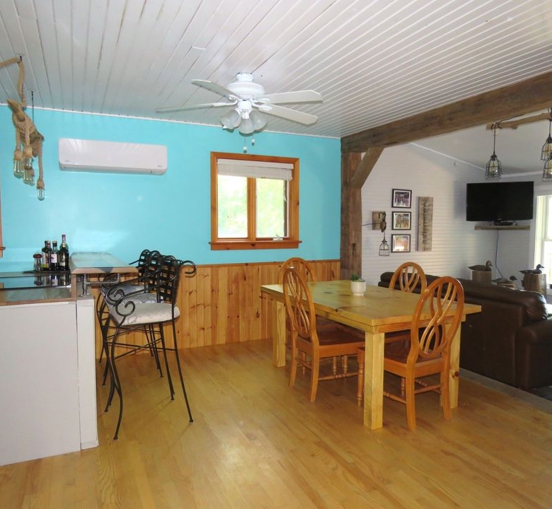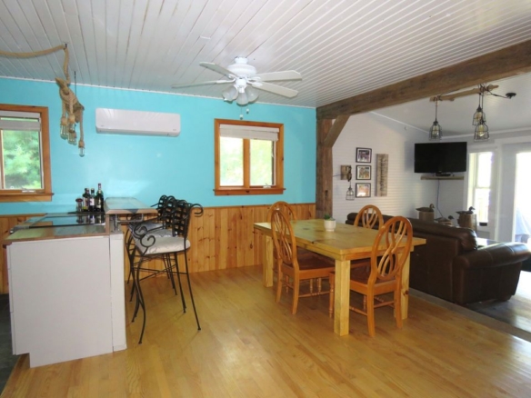 Drilled well, Reverse Osmosis and UV water purification. Electric water heater (owned). Six new stainless-steel appliances (2022). New wood stove (WETT certified), ductless heat pump (added in 2022), plus baseboard heaters provide options to stay warm in the winter and cool in the summer. Extensive new 10×30 decking across the entire front of the home plus porch deck on side of main building. Lake side of home professionally landscaped with perennials. No grass to cut. Extremely low maintenance home and property.