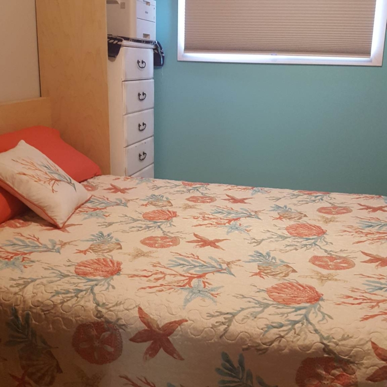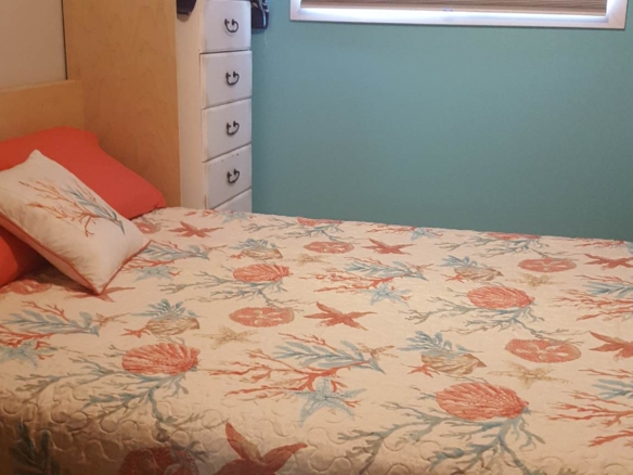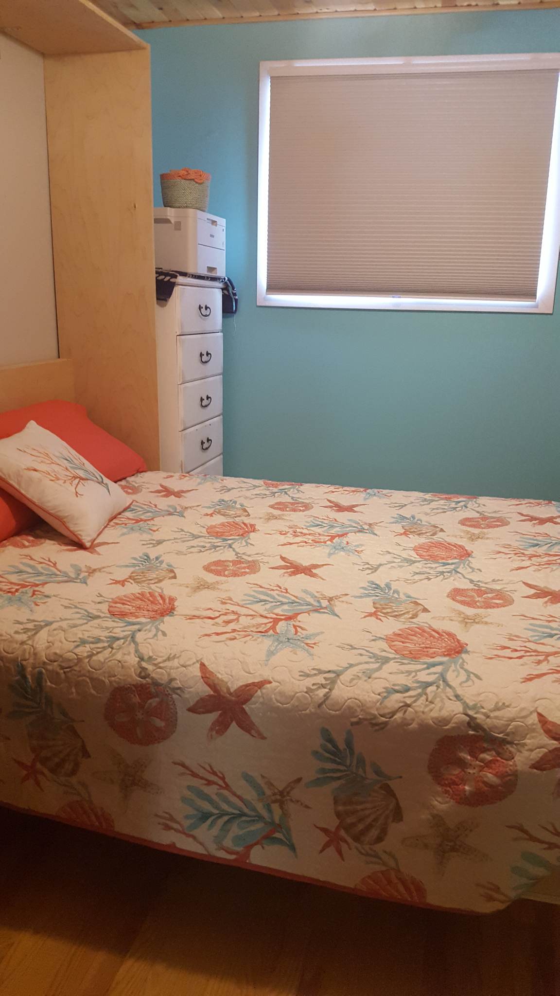 Master bedroom with plenty of windows offers a great view out over the lake. Bedroom # 2 has queen size Murphy bed with built in fold-down desk. Three-piece bathroom with new shower, sink, and toilet. Large entry-way provides room for storage, washer/dryer, and water systems.
