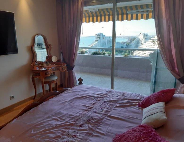 Possibly the best apartment this size(4 pieces) in Marina Baie des Anges. 115m2 +2 balconies, ,+1 parking (271) + 1 cave (1530). 13th floor with all day sun exposure , magnificent sea and Nice views, yet angled enough to avoid sea storm winds.