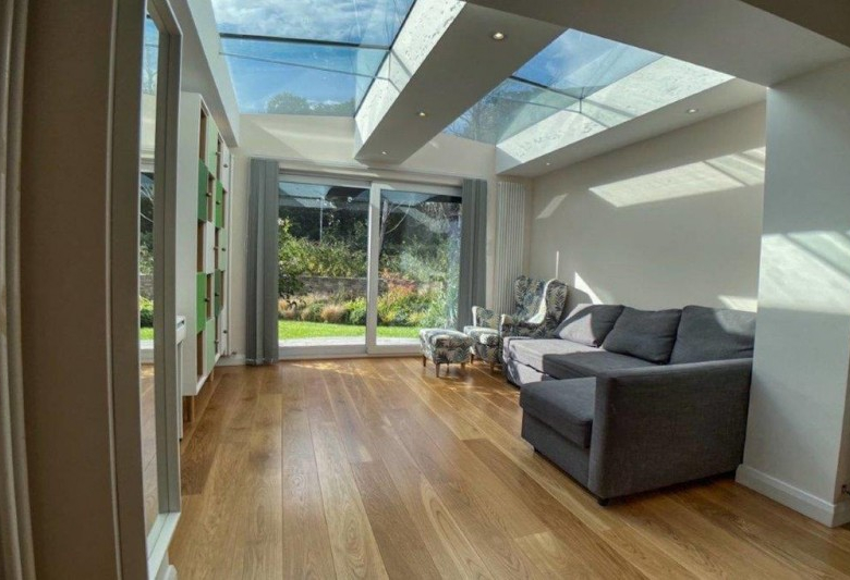 Lounge / Dining room / kitchen. Sliding patio doors to landscaped communal gardens with westerly orientation. Roof lighting.