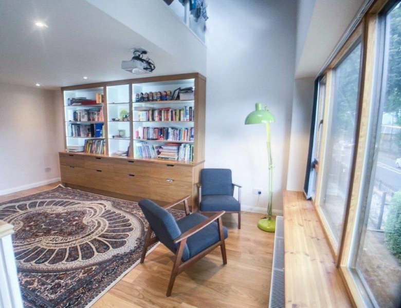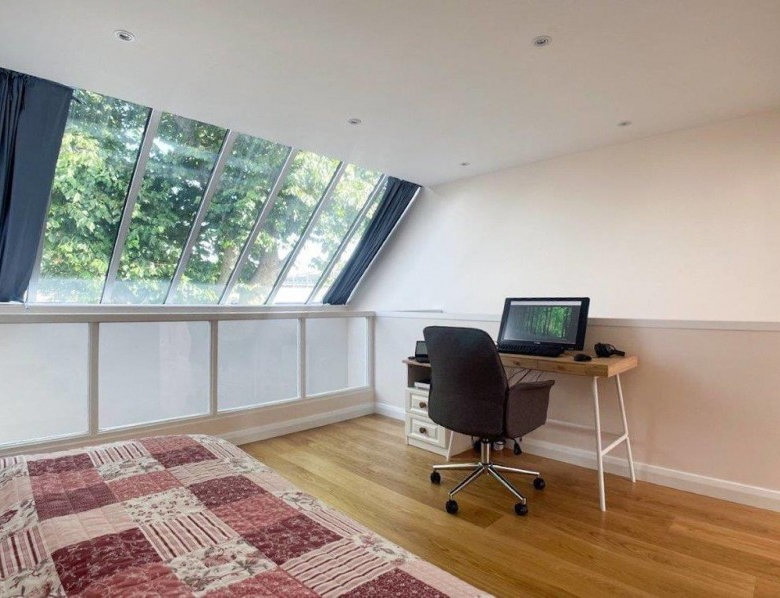 Mezzanine. ideally suited as an office space / private sitting room / study / relaxation room. Wonderfully bright room with sloping windows and views to the RDS