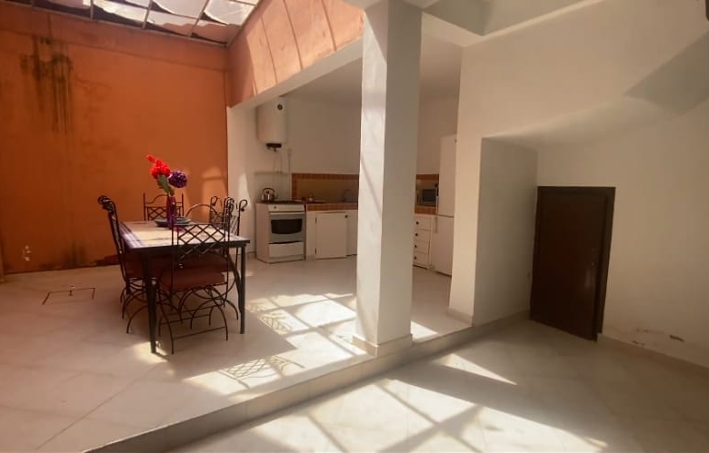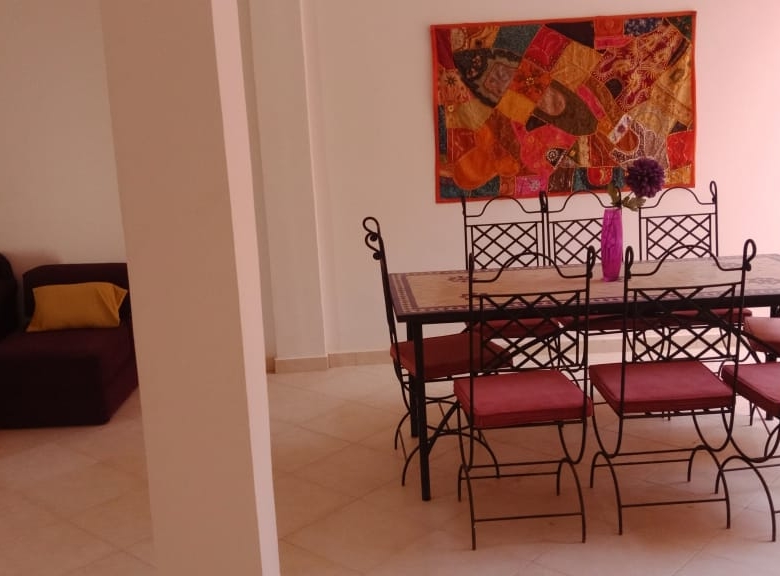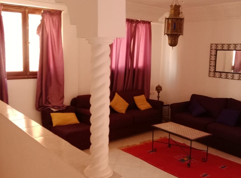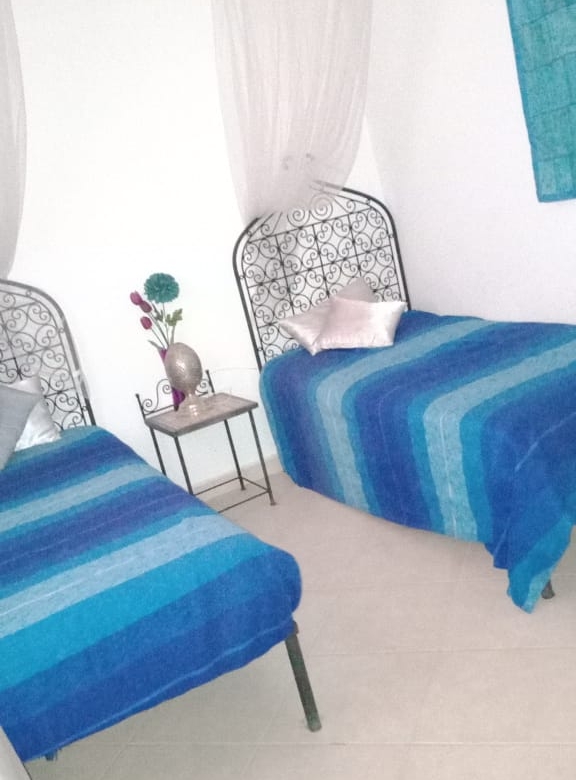* Fully furnished comfort: Relax and unwind knowing everything is taken care of. From a traditional Moroccan vibe to living room chairs that double as beds, this house offers all the comforts for a blissful stay. Up to eight guests can find their perfect spot under the Moroccan sun.