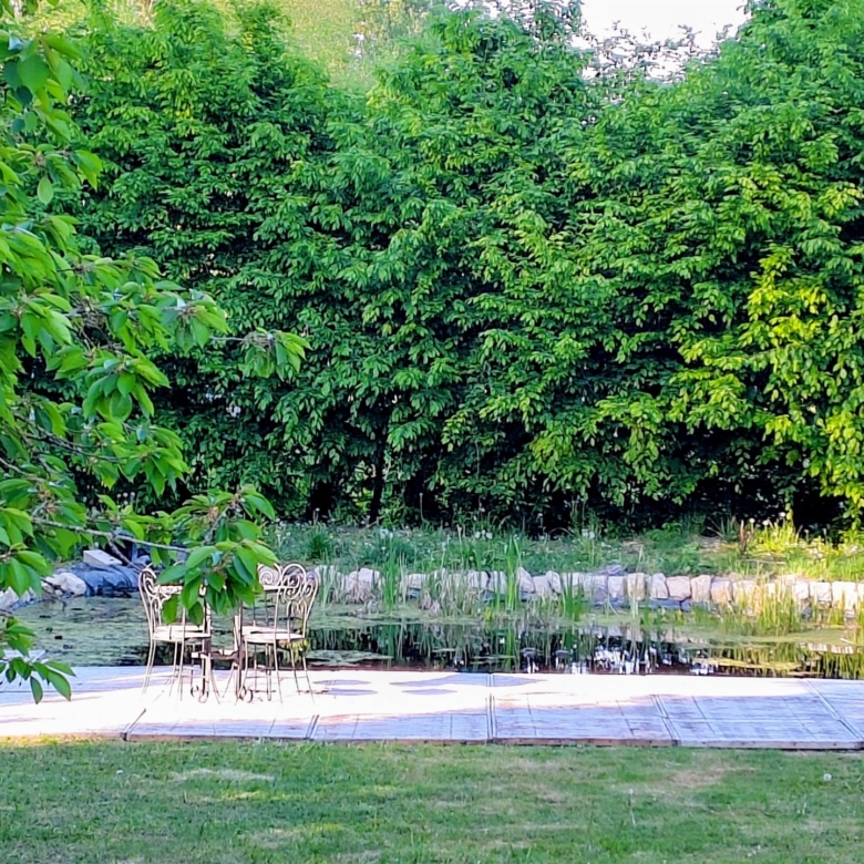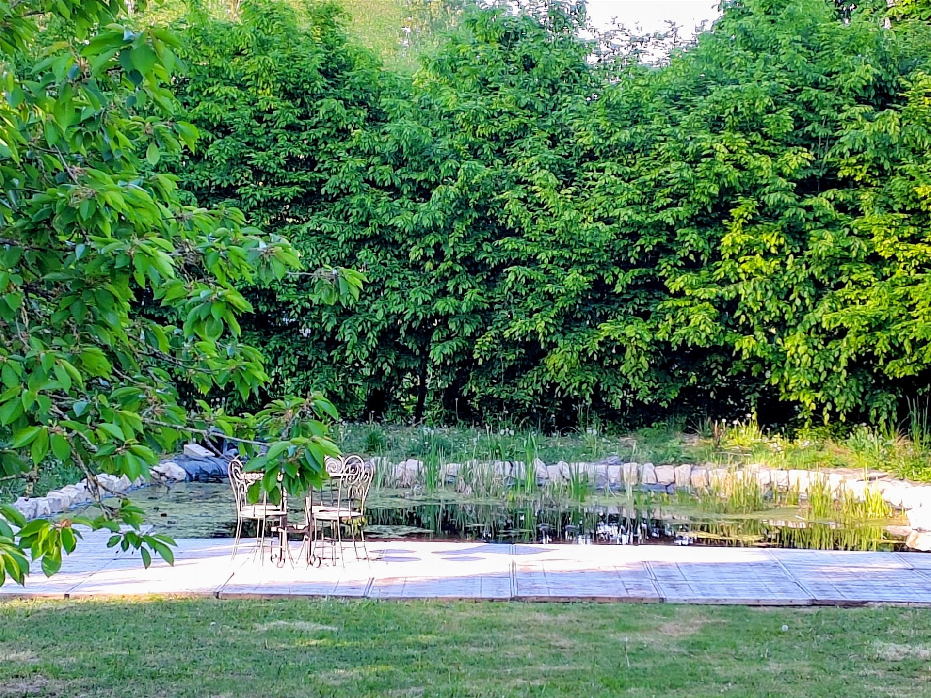 * Rear Garden: The rear garden, electrified in 2024, features a terrace, an outdoor kitchen, and a natural swimming pool. The terrace provides an ideal space for outdoor dining and relaxation, while the outdoor kitchen allows for alfresco cooking and entertaining. The natural swimming pool, filtered by plants, offers a refreshing and eco-friendly alternative to traditional pools.