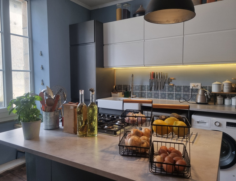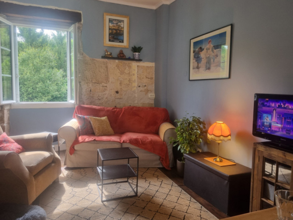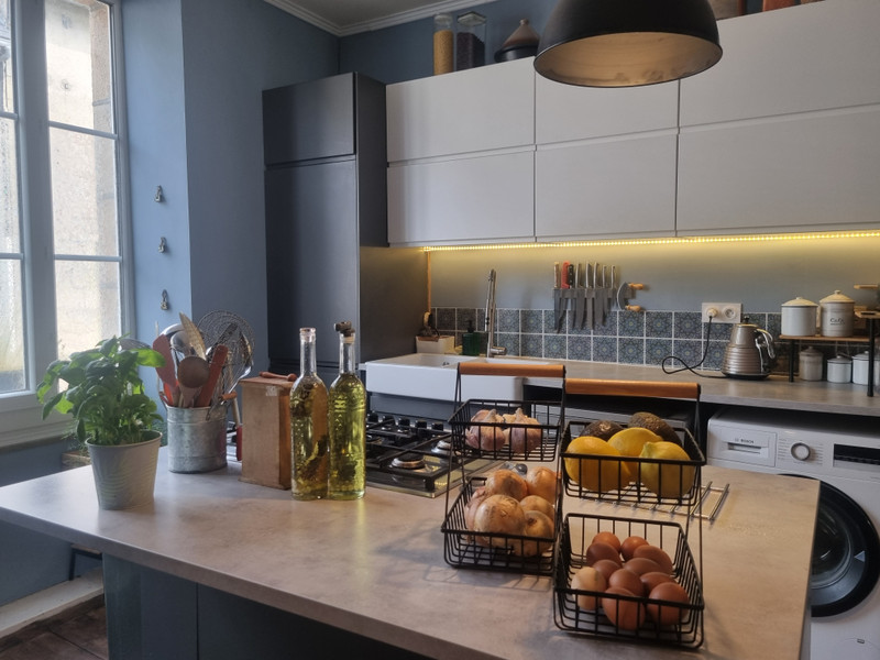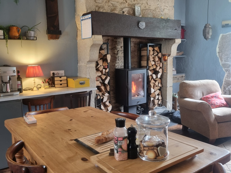 The house is thoughtfully designed with both style and practicality in mind. It has been connected to mains water and sewage and benefits from high-speed fiber optic broadband. The property also features a lovely terrace accessible from the back of the house that leads to a large, mature garden with a lawn and fruit and hazelnut trees. Two large cellars provide ample storage space, with one ideal for storing firewood and the other for garden equipment. The annual Taxe Foncière is a modest 1500 euros.