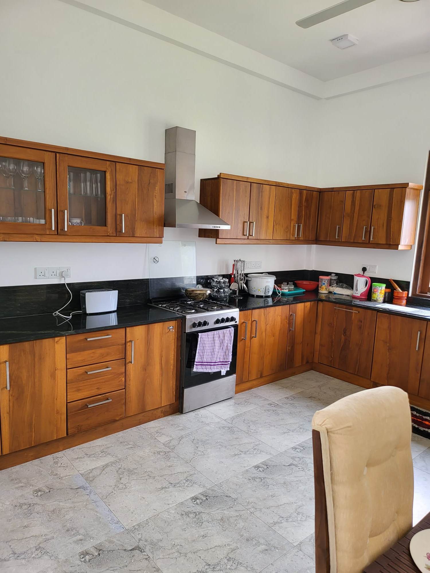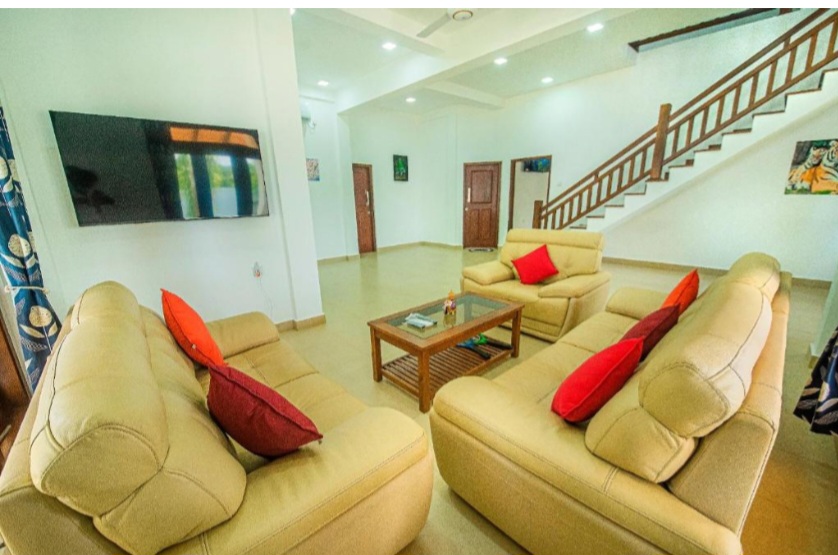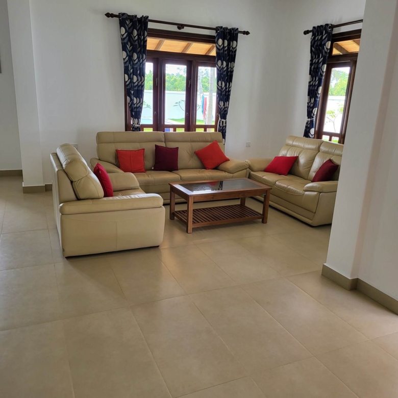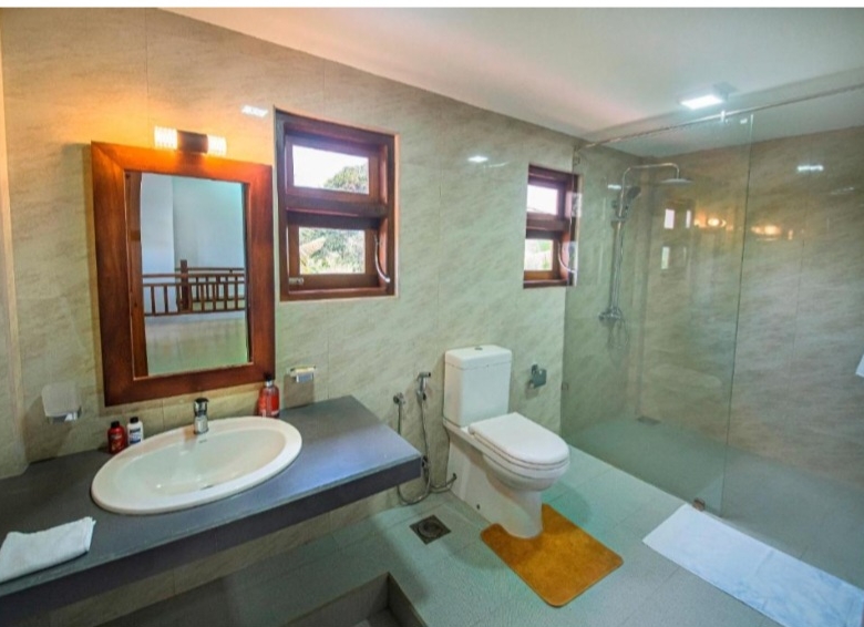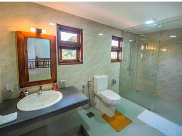 The bathrooms are fitted with rocell which is very top market. No expense was spared in the build. In the garden there are fruit trees and plants and the grass is Australian grass. The house is amazing from the images you can see a lot of love was put into the building it’s situated in between two little towns and about 1.5 hours from Colombo airport.