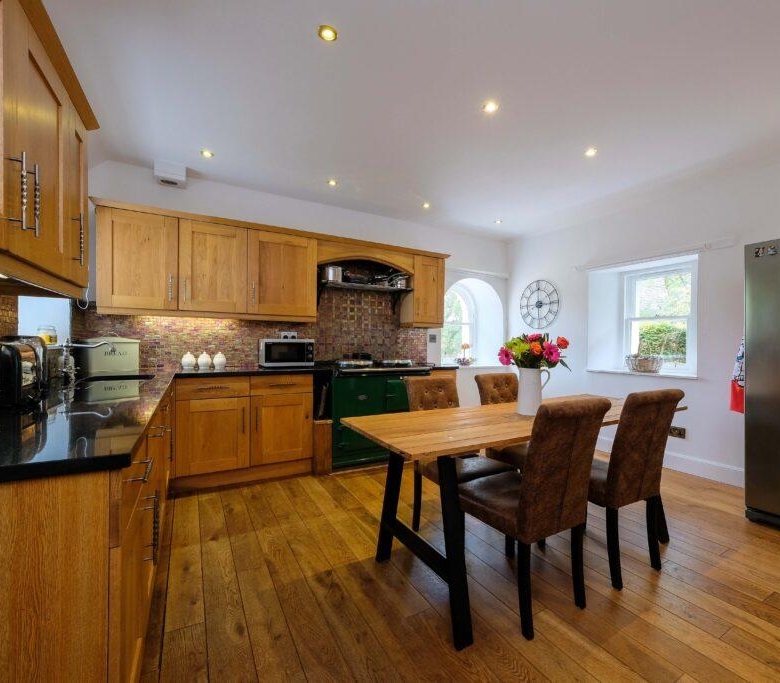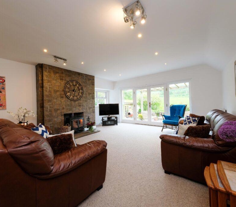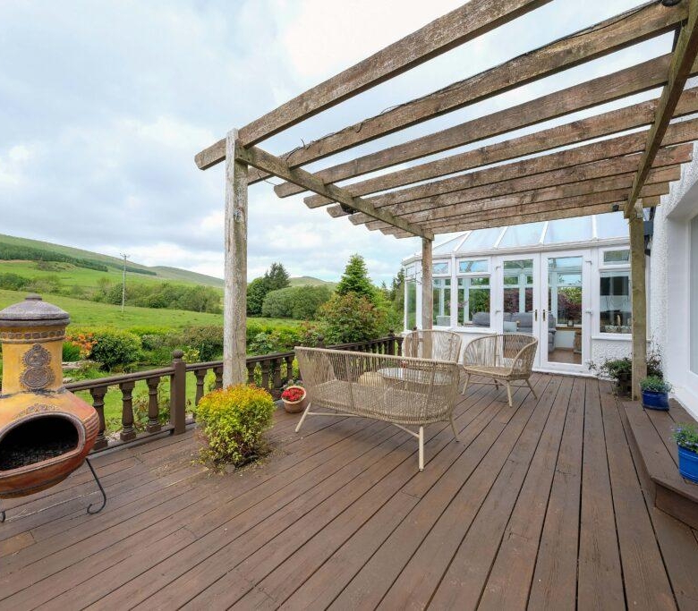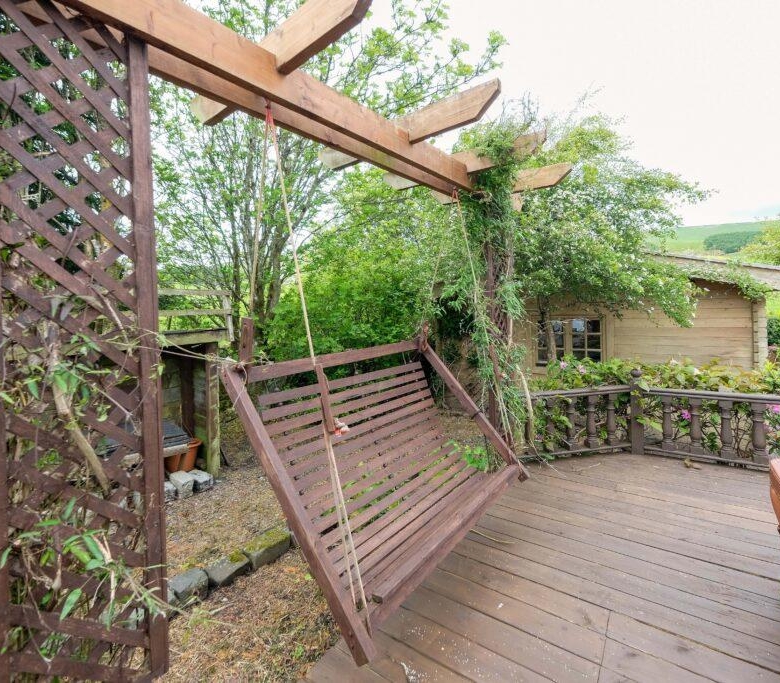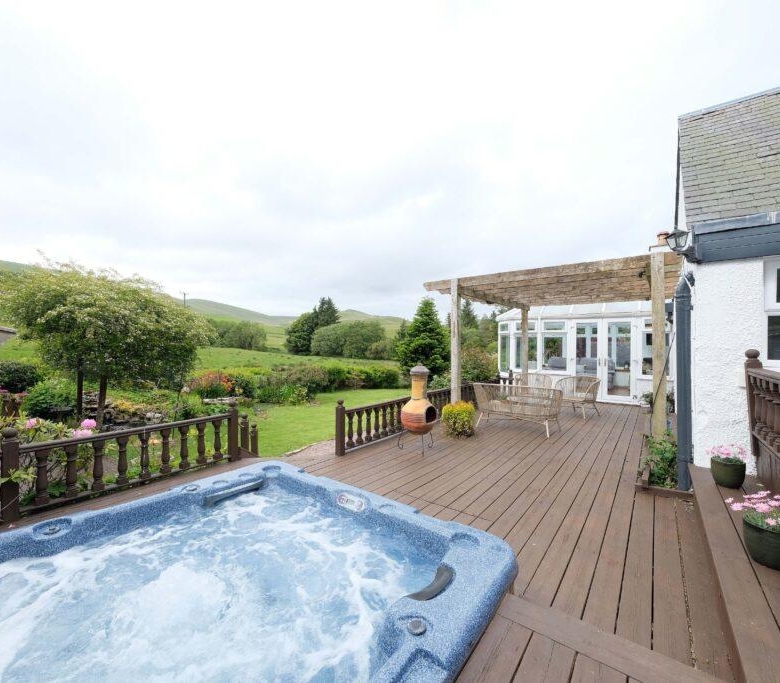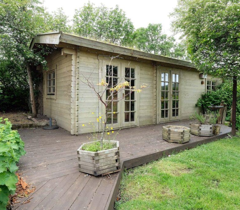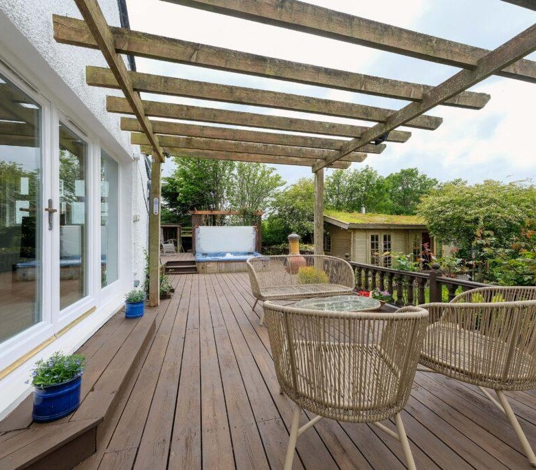 A large driveway provides off-street parking for many cars and access to a large garage with up and over door, power and light and two large store rooms. There is also a versatile studio/workshop with power and light. Greenbraes boasts a fabulous log cabin within its mature gardens with a wood burning stove and a sustainable sedum roof. The cottage is enveloped by beautiful landscaped gardens, which comprise a pergola-covered deck, additional deck areas with integrated hot-tub (included in the sale), lush green lawns, a pond, a vegetable garden, mature shrubs and trees.