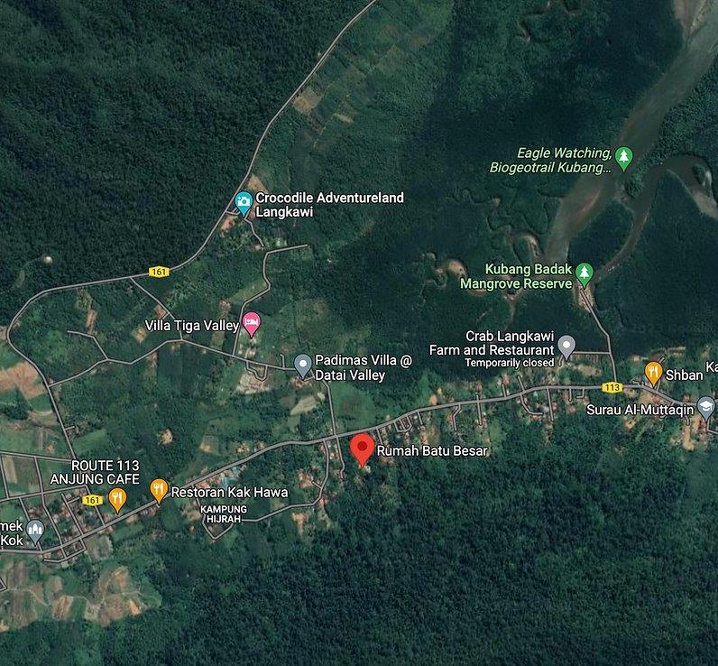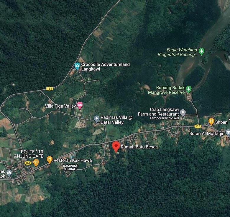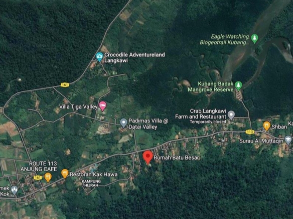 The property in the village of Kubang Badak. has its own separate Leasehold title. This contains the main residence and 3 x self-contained Guest Bungalows with a fully equipped kitchenette and a generous size bathroom. The main residence has an Italian gas hob with an Oven. The dining area has an 8-seater dining table and chairs and the living room has a large-size TV with lounge chairs for comfort. The property has large granite boulders and formations providing a tranquil backdrop and centrepiece for unique and picturesque landscaping. There is huge potential to build a swimming pool with additional accommodations to create a sanctuary of tranquillity, a Spa retreat or a Boutique Resort. There is ample space above to additionally have a glamping facility for holidaymakers that visit the island looking for something different. Not currently available in Langkawi.