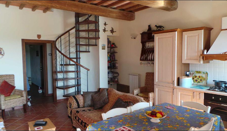This is a stunning, spacious apartment in the complex of Podere Le Volpaie. This stunning property was renovated in 2008 to the highest of standards using traditional building methods. You can enjoy a luxurious mix of chestnut beams, terracotta floors and modern air conditioning, showers, and kitchens.