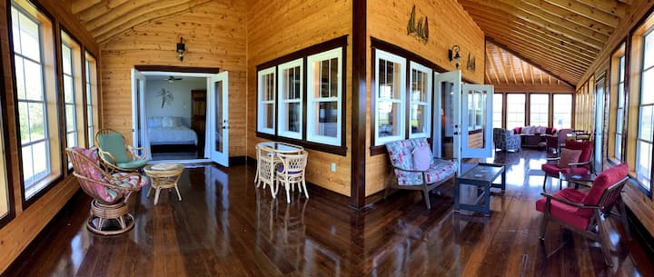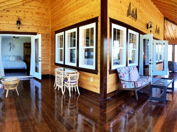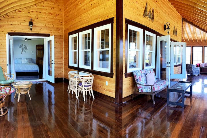 The main home built in 2011, a historic 1900s Porch Cabin design, exudes timeless elegance. The wraparound deck offers breathtaking views of the Atlantic Ocean, inviting you to relax and soak in the coastal ambiance. Inside, the open-concept layout, adorned with all-wood walls, high gabled ceilings, and heavy-wood beams, creates a warm and inviting atmosphere. The main floor features a laundry nook, a three-piece bathroom, and two bedrooms. Upstairs, you’ll find the spacious master bedroom and a full bathroom.