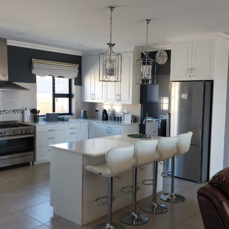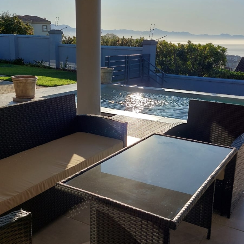 The property is fully furnished and is beautiful. It has 4 bedrooms and 3 bathrooms and is very spaces. It is in a security complex and have 24 hour security coverage. It has the most beautiful sea and mountain views that you can ever imagine. It has a private swimming pool and a love braai area with roll down blinds. It is a very lovely town and very peaceful. The house is also close to the security boom gate which makes it even more safer.