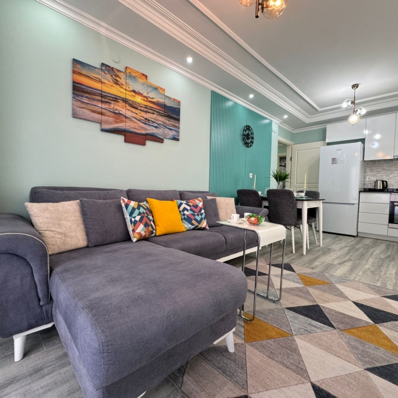 Discover the essence of coastal living in this beautifully furnished 1+1 bedroom apartment located in the vibrant area of Tosmur. Nestled in an ideal location, this apartment offers direct access to the beach, making it a perfect haven for those who cherish the sound of waves and the fresh sea breeze.