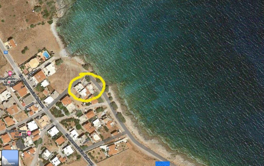 A primely located 885m2 complex with a spectacular view comprising of 3 consecutive houses and a large commercial area. The property is situated right at the beach in the beautiful tourist town of Monemvasia (A Castle Beyond Time). It is located 20 meters from the sea and 50 meters from the nearest swimming beach (Glyfada Beach).