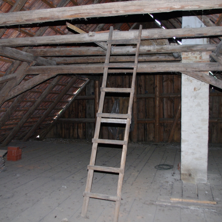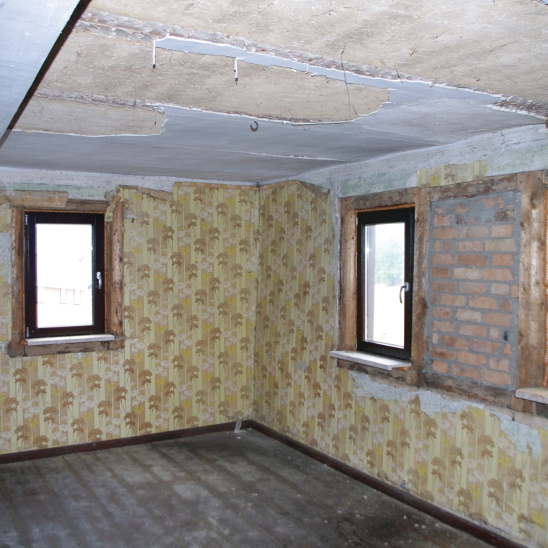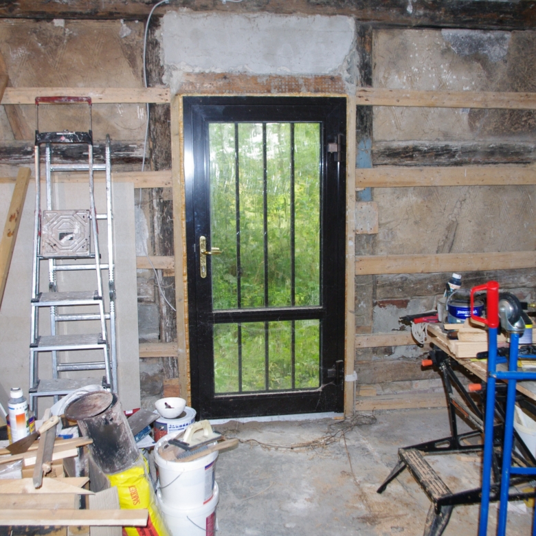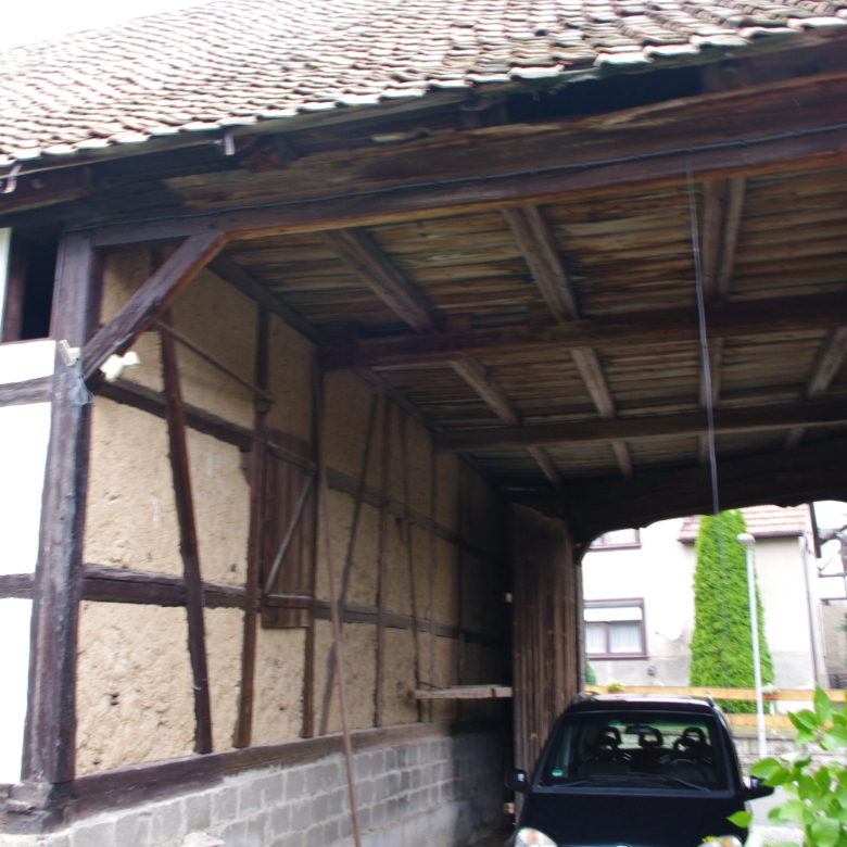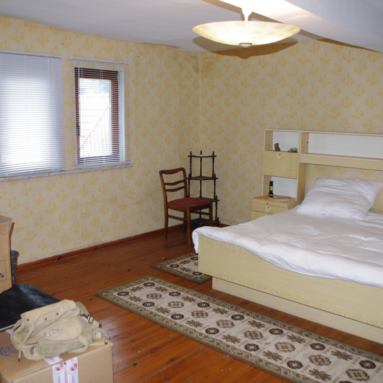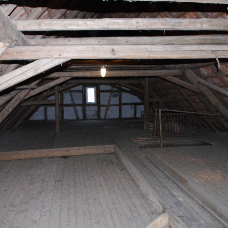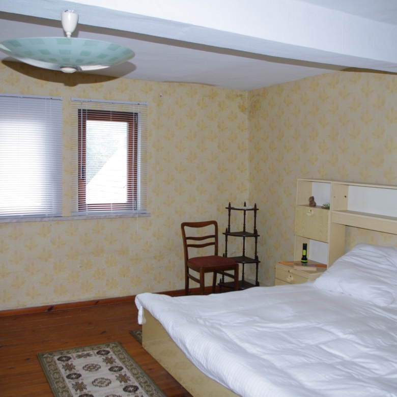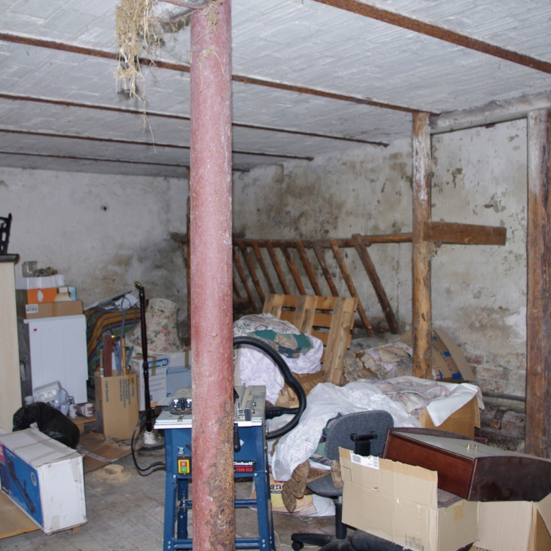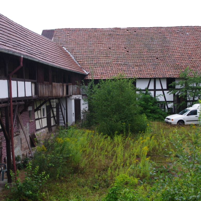Large farmhouse of traditional ‘fachwerk’ construction, rooms laid out on two floors. Open attic floor running the full length of the house. Stone cellar/ storeroom running under two-thirds of house. Long barn running the length of one side of the property containing stalls for animals and storage rooms on two levels, and also a garage for car.