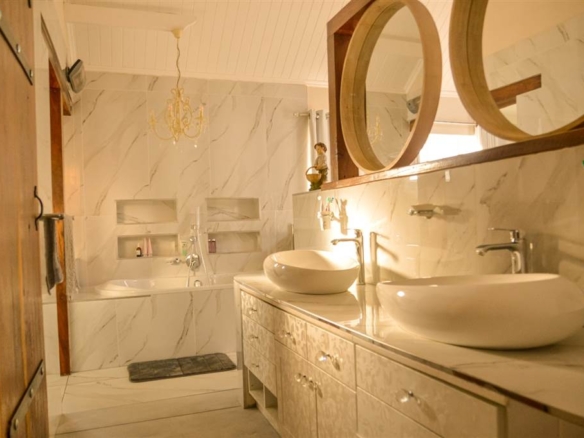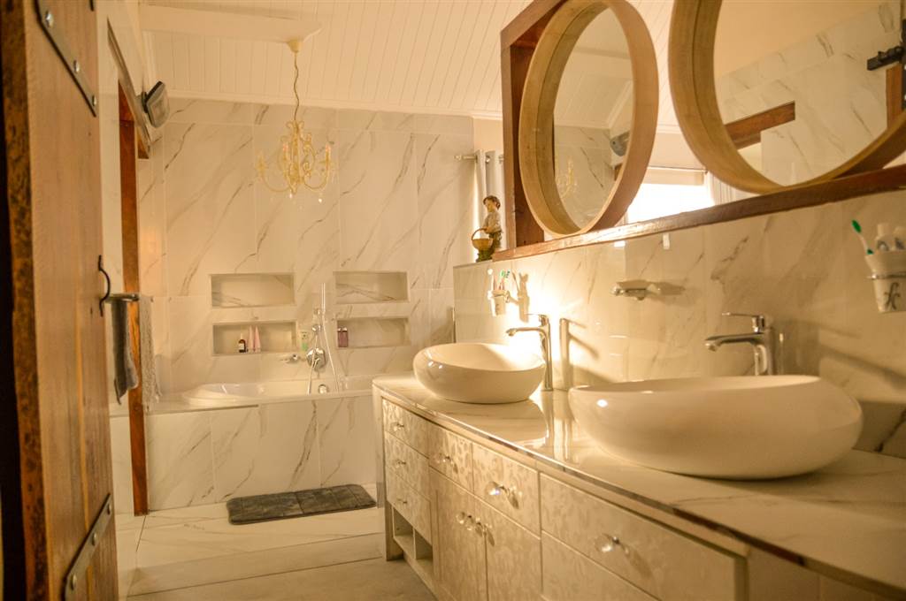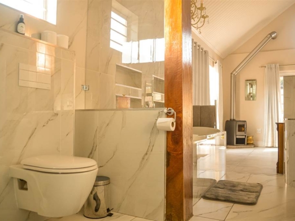 It is a reluctant sale and the owners are very sad to be leaving their piece of paradise but have decided, due to retirement, to move closer to their family. Free water, the possibility of free electricity and the beach that is only an hour and a half’s drive away. The property is also a one hour’s meander to the picturesque town of Underberg, at the foothills of the southern Drakensberg and Sani Pass. It’s the best of both worlds, and a place to savour an authentic way of living. There is so much more to say about Baildenfalls. Frankly, just too much to mention. Other features include a huge undercover veranda area, water features, herb/vegetable gardens, a built-in braai, rustic stables, underfloor heating powered by a heat pump that recycles hot water in underground pipes, incredible woodwork features and staircases, etc.
