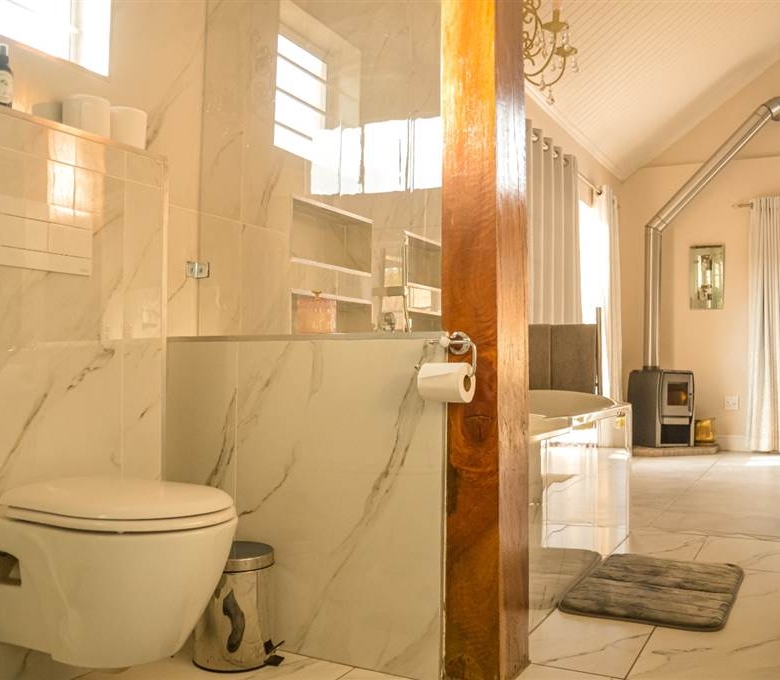 This exclusive lifestyle estate is an evocative experience and is steeped in deep history- having once been a railway siding, and is most famously known for being a thriving bar and restaurant in the valley. Here, the world is your oyster and the possibilities are endless. Baildenfalls lends itself to many income generating opportunities- the hospitality industry being one of them. The property can be anything from a boutique hotel to a B&B, a lodge, a spa, retreat or wellness center. There are 8 outbuilding’s separate to the main house, 3 are stunning ready-to-use bungalows and there are more outbuildings that can be converted. There is also a huge bar with a stunning countertop and tables and chairs that looks out on the waterfall. A place that’s perfect for functions or even a larger bungalow.