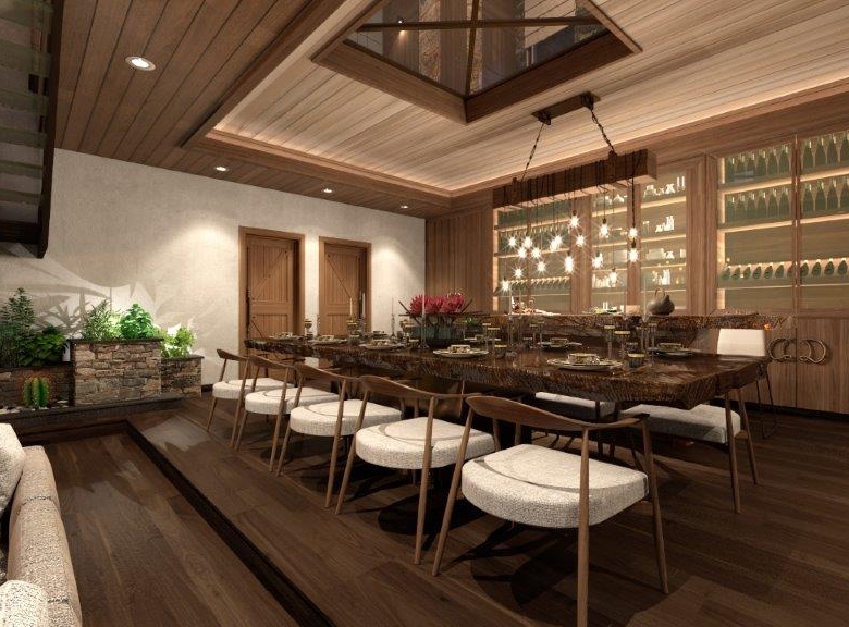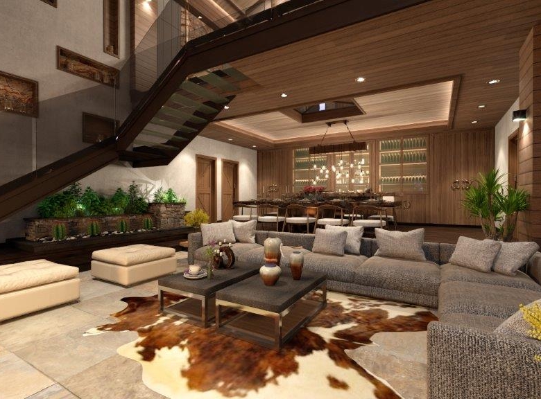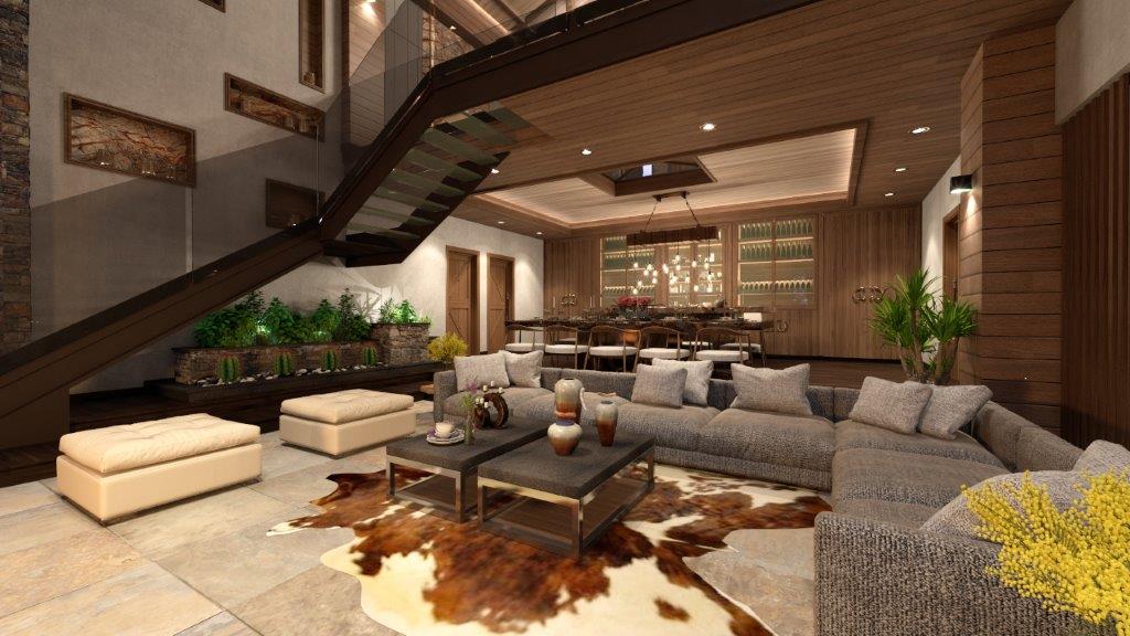 Le Grand Chalet has a covered area for the comfortable stay of a large family – 826 S/M. The chalet has five bedrooms with bathrooms and dressing rooms, a study, a living-dining room with double light and a massive fireplace, a spacious kitchen, a maid’s room, technical rooms, security room a spa with pool and sauna, gym, Cava and a home cinema.
