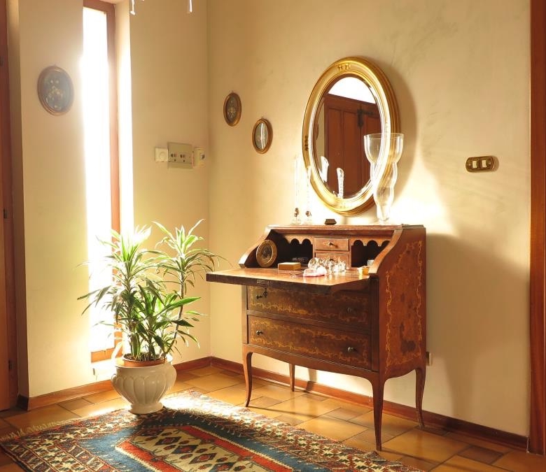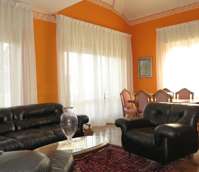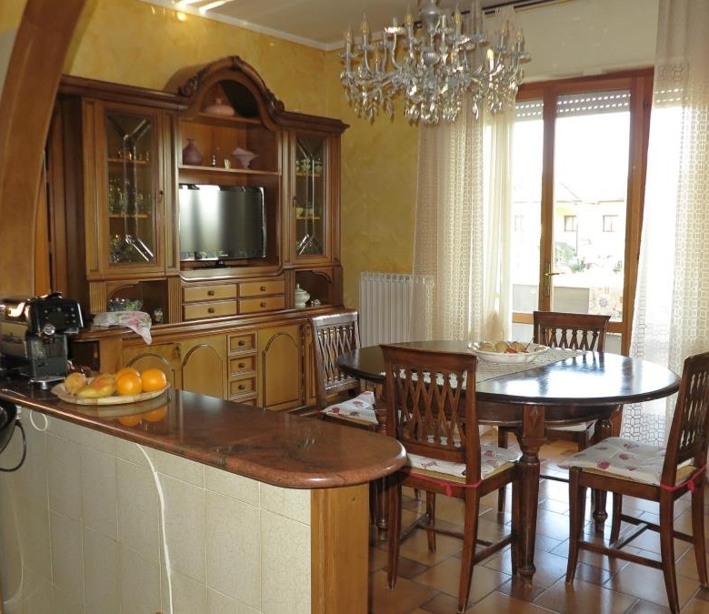 First floor: apartment of 140 square metres with access both by internal staircase connected to the ground floor and by external staircase; composed of entrance hallway, large living room with fireplace, large window with access to terrace, kitchen and dining room, two bedrooms with balcony and third bedroom / study and two bathrooms with bath and shower