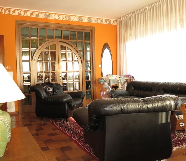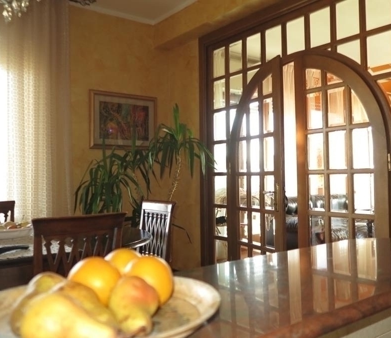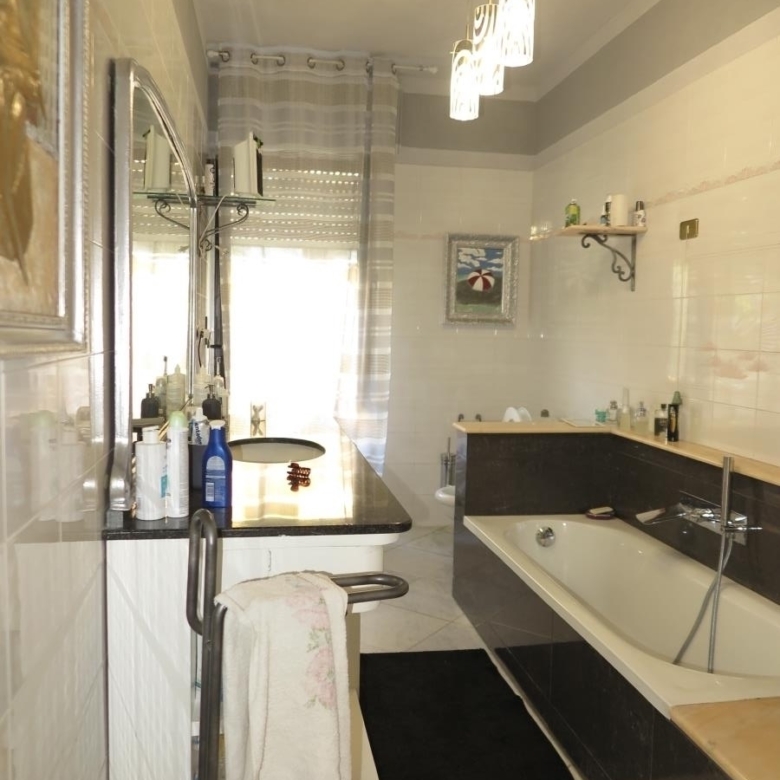 Ground floor: finely renovated apartment of 140 square metres with entrance into a large living room with fireplace, spacious kitchen and dining-room , access to the sleeping area through a corridor consisting of a large double bedroom, two more bedrooms, bathroom with bathtub / shower room.