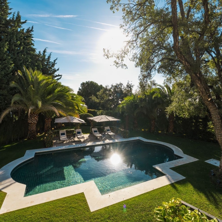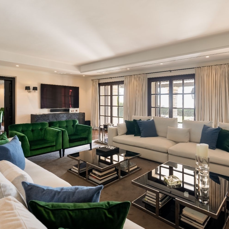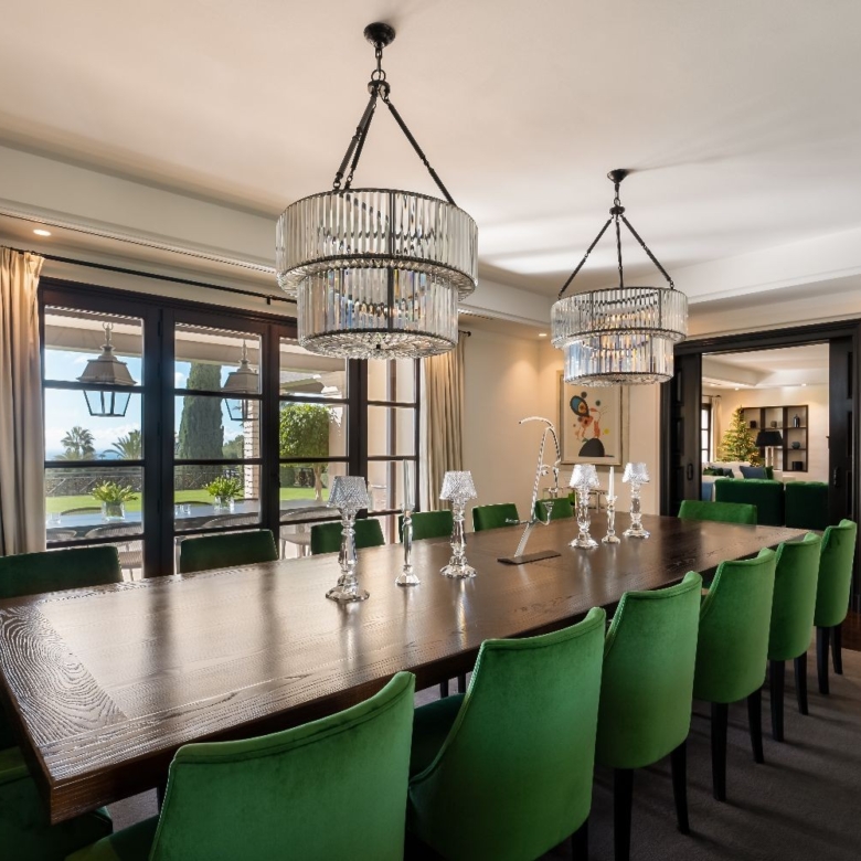 This exquisite 7-bedroom villa is located in the prestigious Cascada de Camoján area on Marbella’s renowned Golden Mile. Nestled in a prime mountainside setting, the property offers breathtaking panoramic views of the sea, lush gardens, and the surrounding mountains. Known for its peaceful ambiance, top-notch security, and close proximity to first-class amenities, this coveted neighborhood is one of Marbella’s most sought-after locations. Spanning 1,041 m² on a generous 3,093 m² plot, this residence effortlessly blends sophistication with comfort. The main floor features a spacious living room with a gas fireplace, a separate dining area, and a fully equipped kitchen with SMEG appliances, including four ovens. Additional spaces include a study, a laundry room, and a guest bathroom. Expansive terraces further enhance the living spaces, extending seamlessly into the beautifully landscaped surroundings. The property also includes a separate building that houses a fully equipped gym, a Turkish bath, a massage room, a complete bathroom, and ample storage space, offering a private wellness sanctuary. Outdoors, the villa is complemented by a stunning pool area surrounded by meticulously manicured gardens, a BBQ area, a shuffleboard court, and spacious terraces designed for relaxation and entertainment. Equipped with cutting-edge amenities, the villa features underfloor heating, air conditioning with individual room control, a built-in sound system, solar panels, and a newly renovated roof (2024). The interior showcases wooden floors with green-tiled accents, double-glazed windows, elegant wooden doors, and bathrooms outfitted with high-end Villeroy & Boch fixtures and Zucchetti fittings. The property also includes a garage for 1.5 cars, a carport for two vehicles, and plenty of additional parking space. Security is enhanced with a sophisticated system featuring intercoms and surveillance cameras. This villa represents the pinnacle of luxury living in Marbella, combining timeless elegance with modern convenience. Ideal for families or those seeking a tranquil retreat, it offers easy access to shopping, schools, and Marbella’s vibrant city center. Whether you’re relaxing in the private spa or hosting gatherings on the terrace with panoramic sea views, this property promises an unparalleled lifestyle.