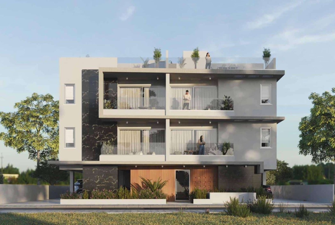 Introducing a modern residential building of fourteen apartments. The project is located opposite of Archagelos Michael church and 400 meters from the Church of Profitis Elias. It’s very close to the shops, supermarkets, schools, and only 20 kilometers away from Larnaca airport, with direct access to the highway to Nicosia and Limassol. At a distance of 2 kilometers are the beaches of the area (Blue wave, Lebay beach). This modern 2 bedroom apartment features an open-plan living area, fitted kitchen, and elegant finishes throughout, this apartment combines style and comfort.