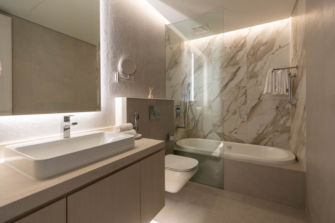 Bathrooms: Modern fittings, including rain showers and bathtubs, designed for comfort and luxury.