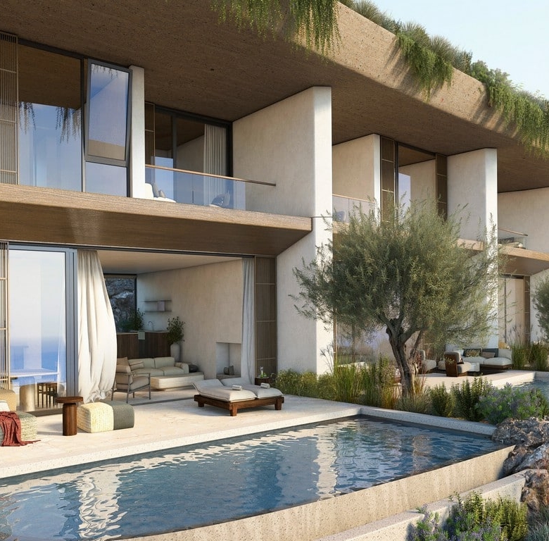 Perched at the highest point of Elounda Hills, the Hilltop Residences offer a rare blend of elevated elegance and uninterrupted panoramas across Mirabello Bay. This exclusive collection of 1-, 2-, and 3-bedroom branded apartments and duplexes is designed to blend harmoniously with the hillside, featuring distinctive layered architecture and biophilic landscaping that enhances the natural beauty of the Cretan coastline.