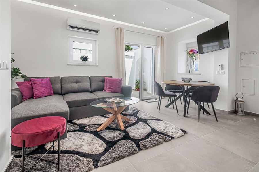 The property is currently divided into two fully independent apartments, each with a private entrance. The main apartment features an open-plan kitchen that is fully fitted with modern appliances and seamlessly connects with a bright and stylish living and dining area. On the ground floor, there is a spacious ensuite bedroom, while the first floor is dedicated to the master suite, which offers direct access to a large private balcony with excellent sun exposure, equipped with outdoor furniture perfect for relaxing. From the living area, there is also access to a beautifully designed interior patio, ideal for al fresco dining, with a barbecue area, sofas, and a dining table. This unit is fully air-conditioned with new, high-efficiency units and benefits from solar panel water heating, ensuring energy efficiency and lower operating costs. The home is equipped with high-end double-glazed windows and electric shutters for optimal insulation and comfort.