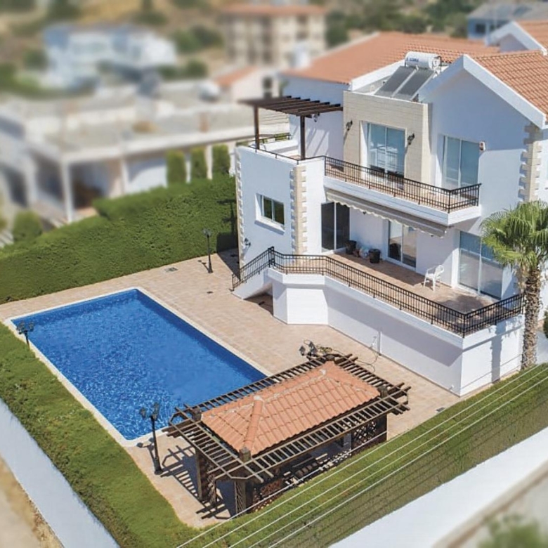 Located in the highly sought after residential area of Panthea, this elegant residence offers luxury living in one of Limassol’s most exclusive neighborhoods with unobstructed views over the eastern side of the city. Set on a generous 659 sqm plot, the home spans three levels with a total covered area of approximately 319 sqm, plus 30 sqm of covered verandas. It also features covered parking, a beautifully landscaped mature garden, and a private pool area with a kiosk, perfect for relaxing or entertaining. The residence borders a green area and a pedestrian pathway, enhancing both privacy and access to nature, an ideal blend of urban convenience and serene living.