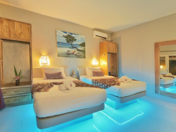 This FREEHOLD beachfront resort is located in Gili Air, Lombok where you will find beautiful golden sand beaches and warm, crystal clear waters with vibrant corals and beautiful marine life. The enchanting property boasts views of mainland Lombok and Mt Rinjani and guests can enjoy watching the sun rise or stare at bright stars at night from the beach in front of the resort.