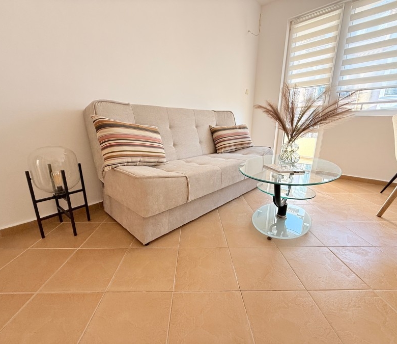 Sunny and spacious 2 bedroom apartment, 84 sq.m., In Solis, Sunny beach, 300 m to the sea We offer for sale very sunny 2 BED apartment in the southern part of Sunny beach resort, close to popular Cacao beach. Distance to the sea is 300 m. The property is situated on the 3rd floor and has a total area of 84 sq.m. It is offered furnished and comprises of: – kitchen; – living-room; – 2 bedrooms; – bathroom/WC; – balcony. Act 16. Low maintenance fee – 150 EUR per year. Excellent for year-round residence and holiday rentals.