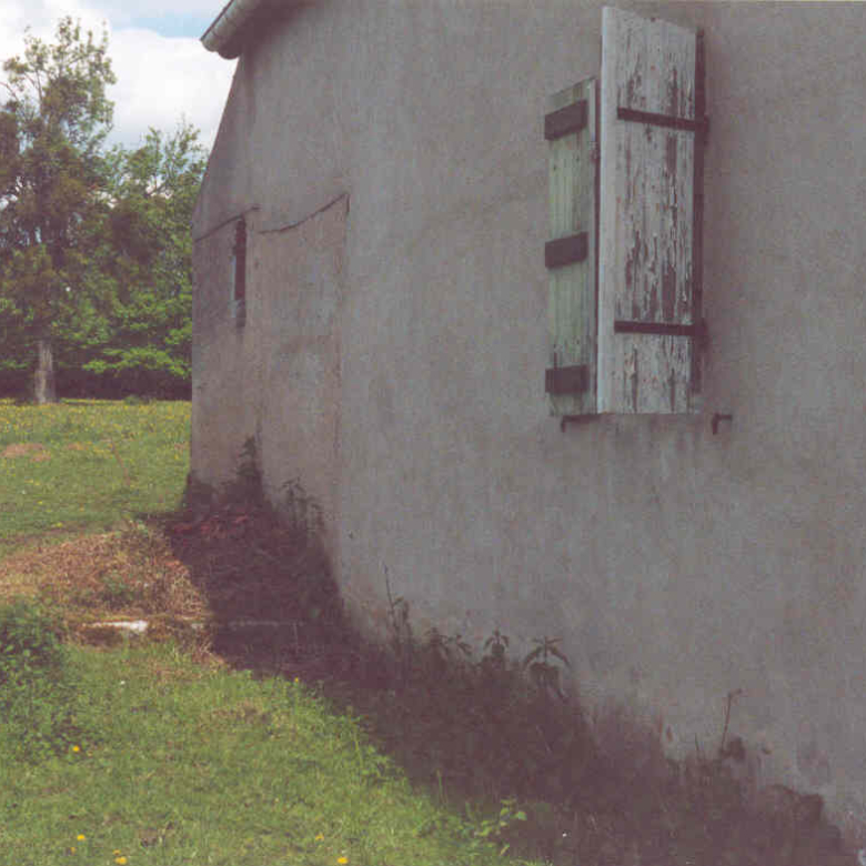 The North room behind a substantial solid door has a plaster board ceiling and shuttered window facing into the field.
