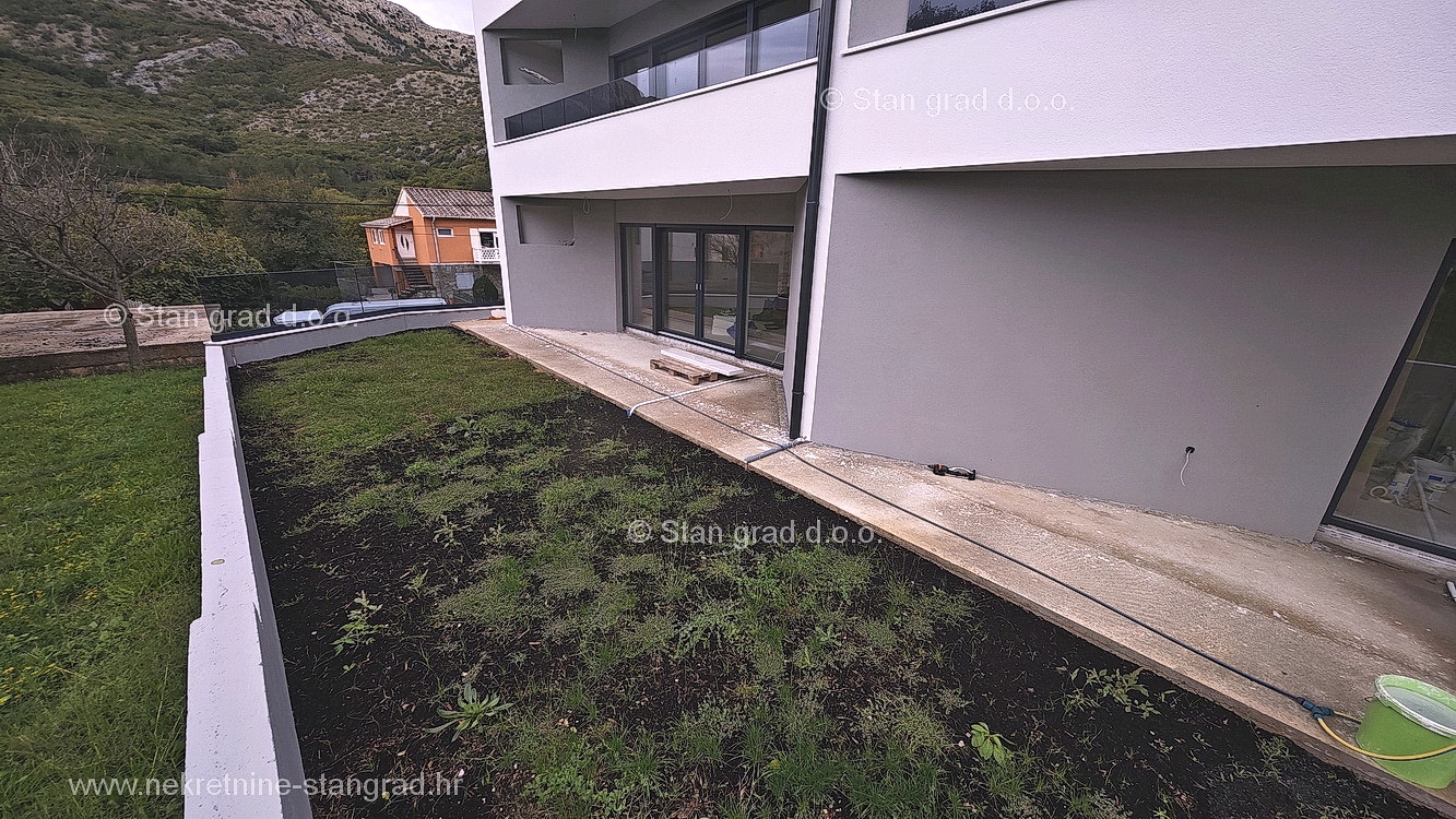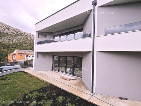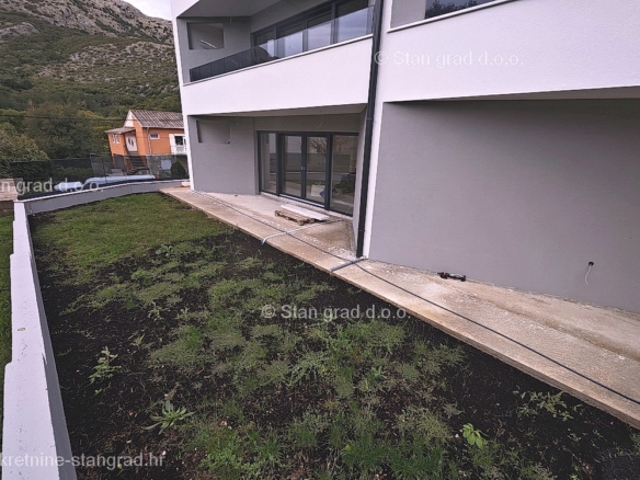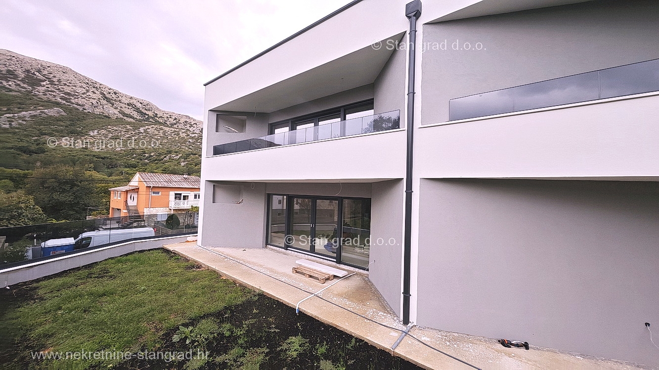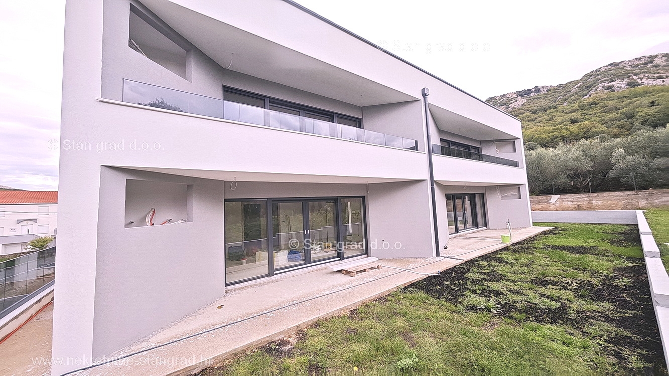 The Stan Grad Immobilien agency is selling an exceptional apartment built according to a modern project on the attractive northern Adriatic area of the island of Krk. This apartment is positioned in a quiet and relatively urbanized location within the municipality of Baška and not too far from the sea and beaches. According to the type of property, this is a medium-sized one-story apartment. Inside the luxuriously built building, the apartment is located on the ground floor. The apartment covers a total area of approximately 61 m2. This area includes the living room and kitchen, 2 bedrooms, bathroom, covered terrace of approx. 10 m2. It is important to emphasize that, within the ownership of the apartment in question, there is also a spacious garden area of approx. 55 m2 that surrounds the property in question. This apartment is owned by a parking space for parking two cars. In addition to the previously mentioned properties, this apartment has a view of the landscaped surroundings and the natural landscape. This apartment is subject to VAT. The real estate seller guarantees a quick transfer of ownership rights and proper ownership and technical documentation. In this big step, your partner Stan Grad Immobilien is here to provide you with all the necessary support and security in buying real estate. If you decide to cooperate with us, the brokerage office Stan Grad Immobilien will be happy to help you with the transfer of property ownership and associated utility connections.