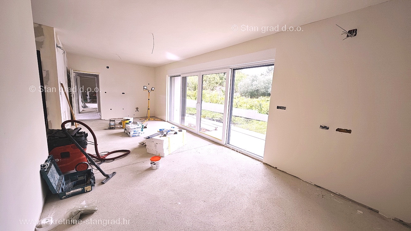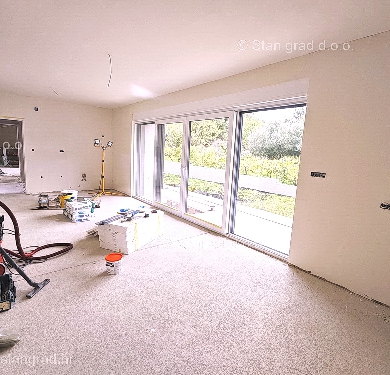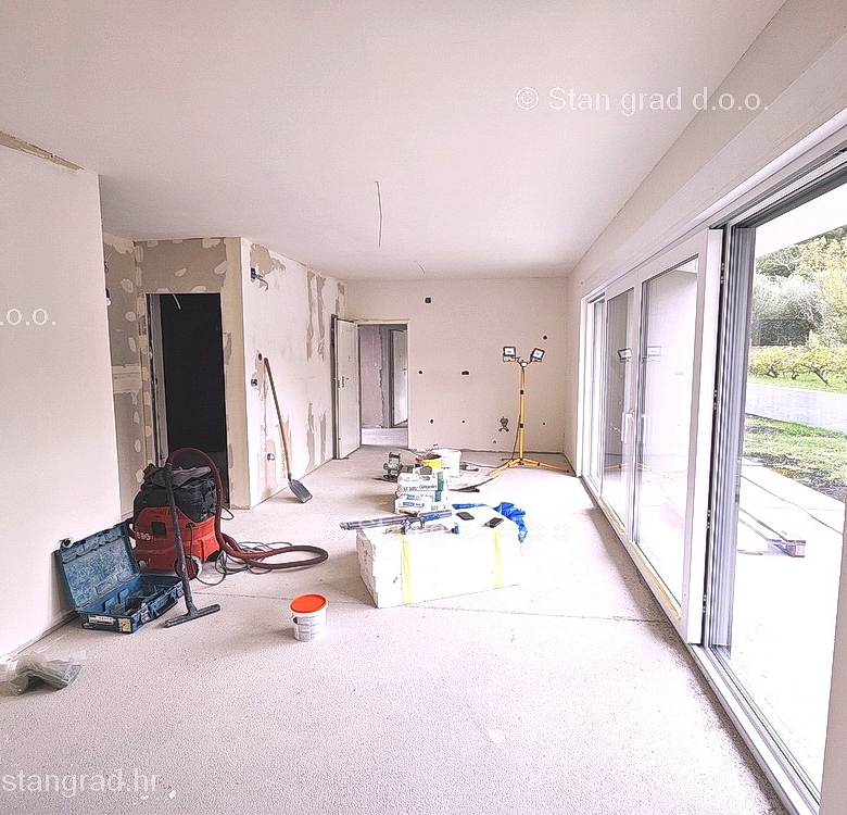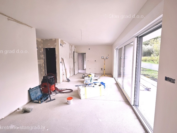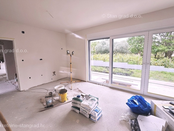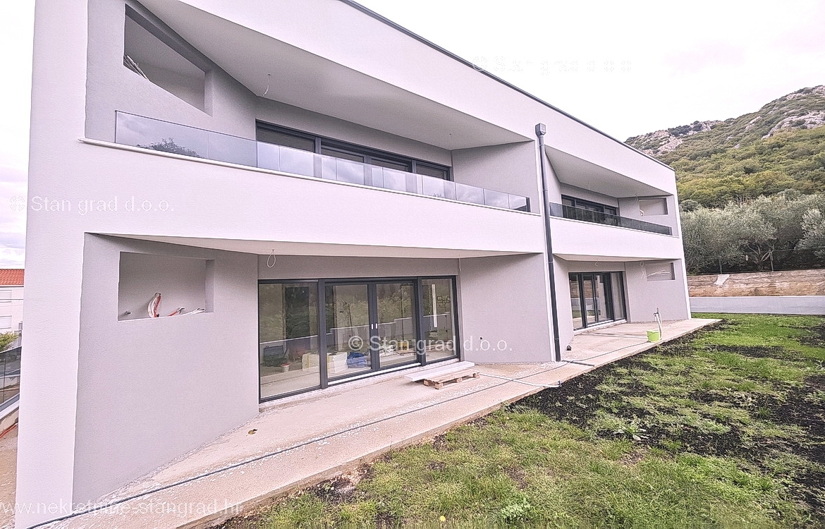 The Stan Grad Immobilien agency is selling an exceptional apartment built according to a modern project on the attractive northern Adriatic area of the island of Krk. This apartment is positioned in a quiet and relatively urbanized location within the municipality of Baška and not too far from the sea and beaches. According to the type of property, this is a medium-sized one-story apartment. Inside the luxuriously built building, the apartment is located on the ground floor. The apartment covers a total area of approximately 61 m2. This area includes the living room and kitchen, 2 bedrooms, bathroom, covered terrace of approx. 10 m2. It is important to emphasize that, within the ownership of the apartment in question, there is also a spacious garden area of approx. 55 m2 that surrounds the property in question. This apartment is owned by a parking space for parking two cars. In addition to the previously mentioned properties, this apartment has a view of the landscaped surroundings and the natural landscape. This apartment is subject to VAT. The real estate seller guarantees a quick transfer of ownership rights and proper ownership and technical documentation. In this big step, your partner Stan Grad Immobilien is here to provide you with all the necessary support and security in buying real estate. If you decide to cooperate with us, the brokerage office Stan Grad Immobilien will be happy to help you with the transfer of property ownership and associated utility connections.