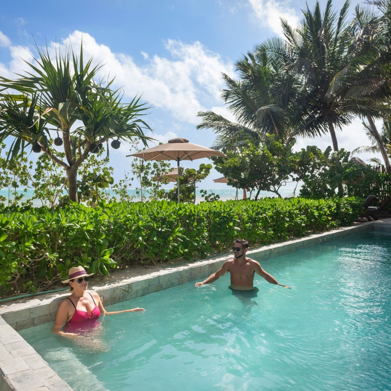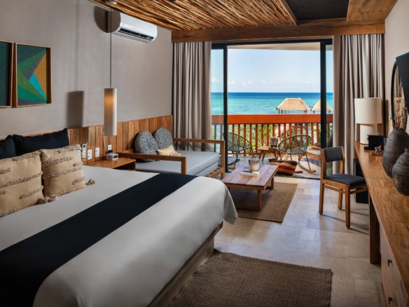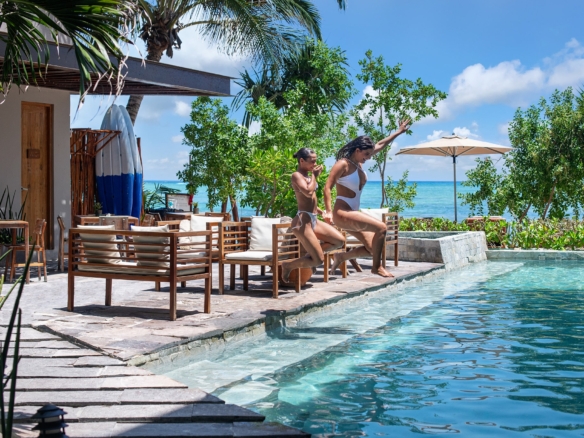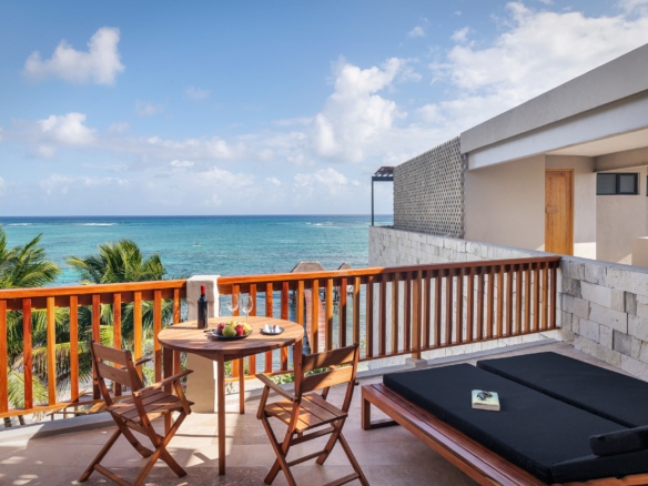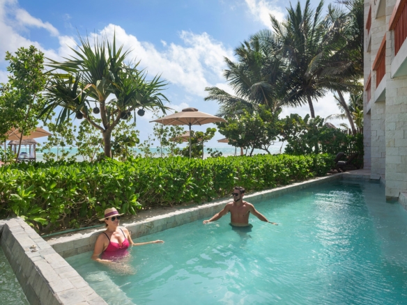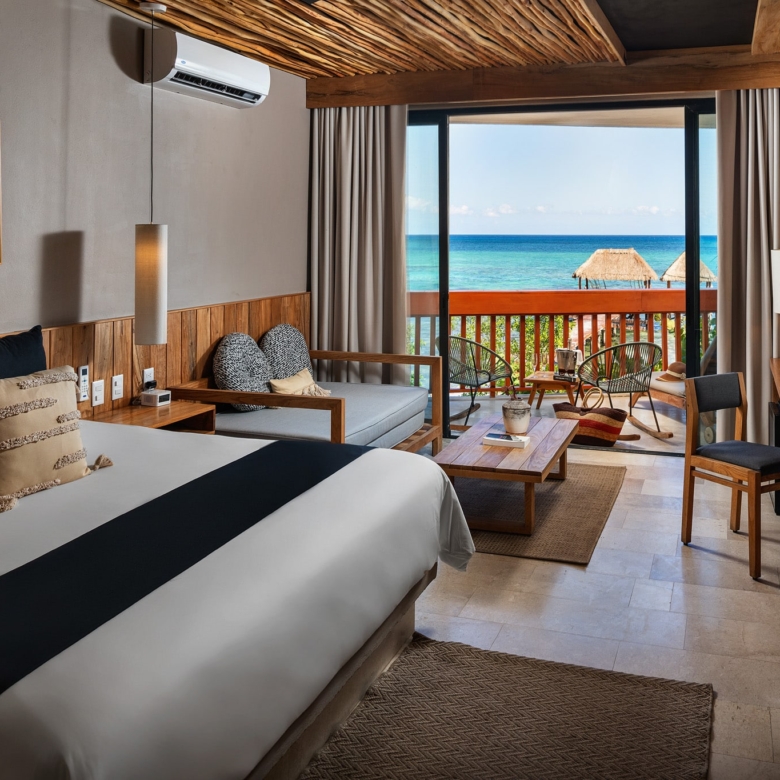 The 21-suite hotel has been thoughtfully designed to provide guests with an elegant yet relaxed experience, featuring spacious layouts, high-end finishes, and private terraces that showcase breathtaking ocean views. The Penthouse Suites offer an elevated experience with private plunge pools, while the Swim-Up Suites provide direct access to crystal-clear waters. Guests can choose from a variety of ocean-facing suites, each designed to enhance their connection to the tranquil surroundings.